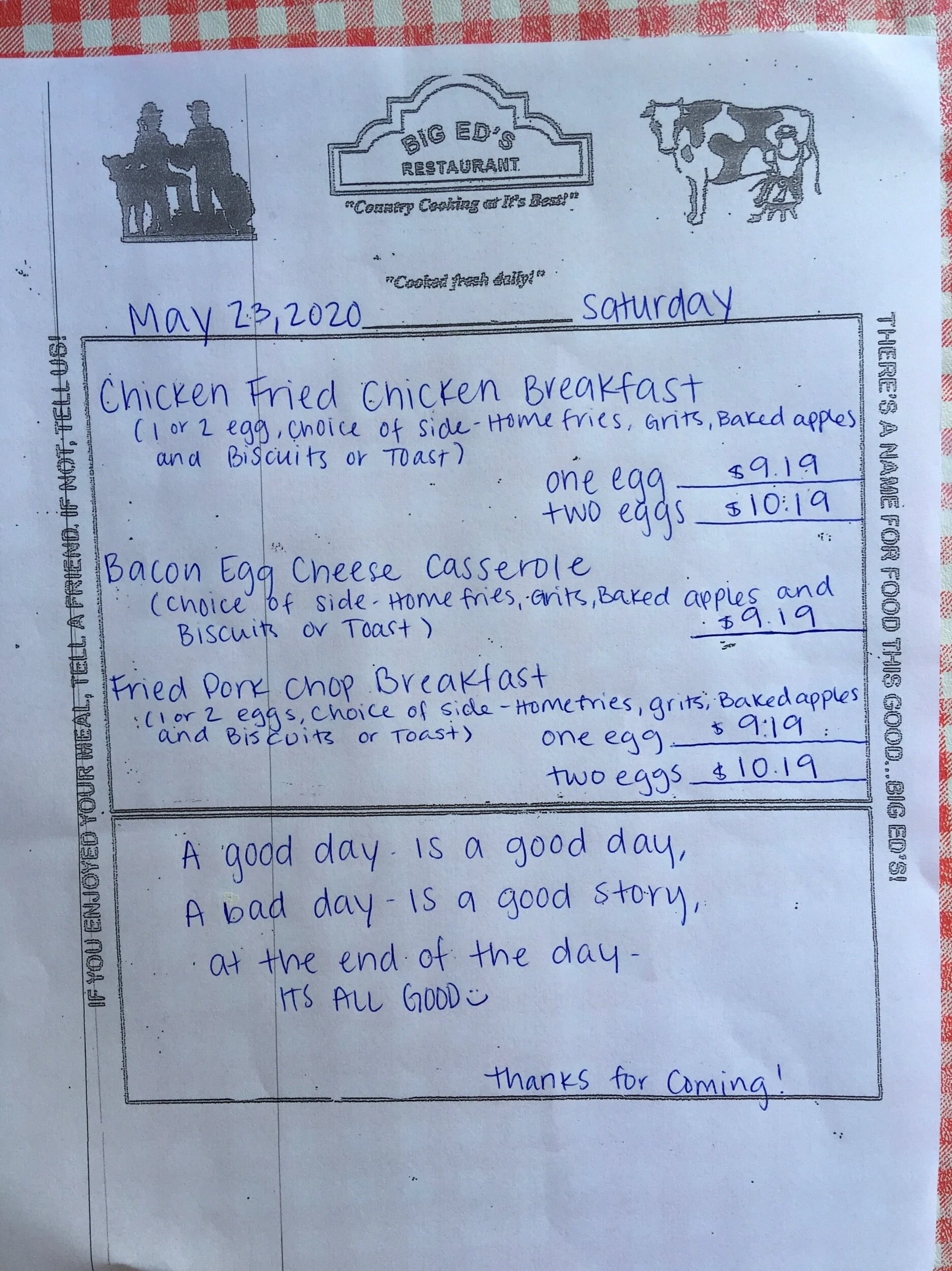 10:30 AM update: Pork Chops sold out!