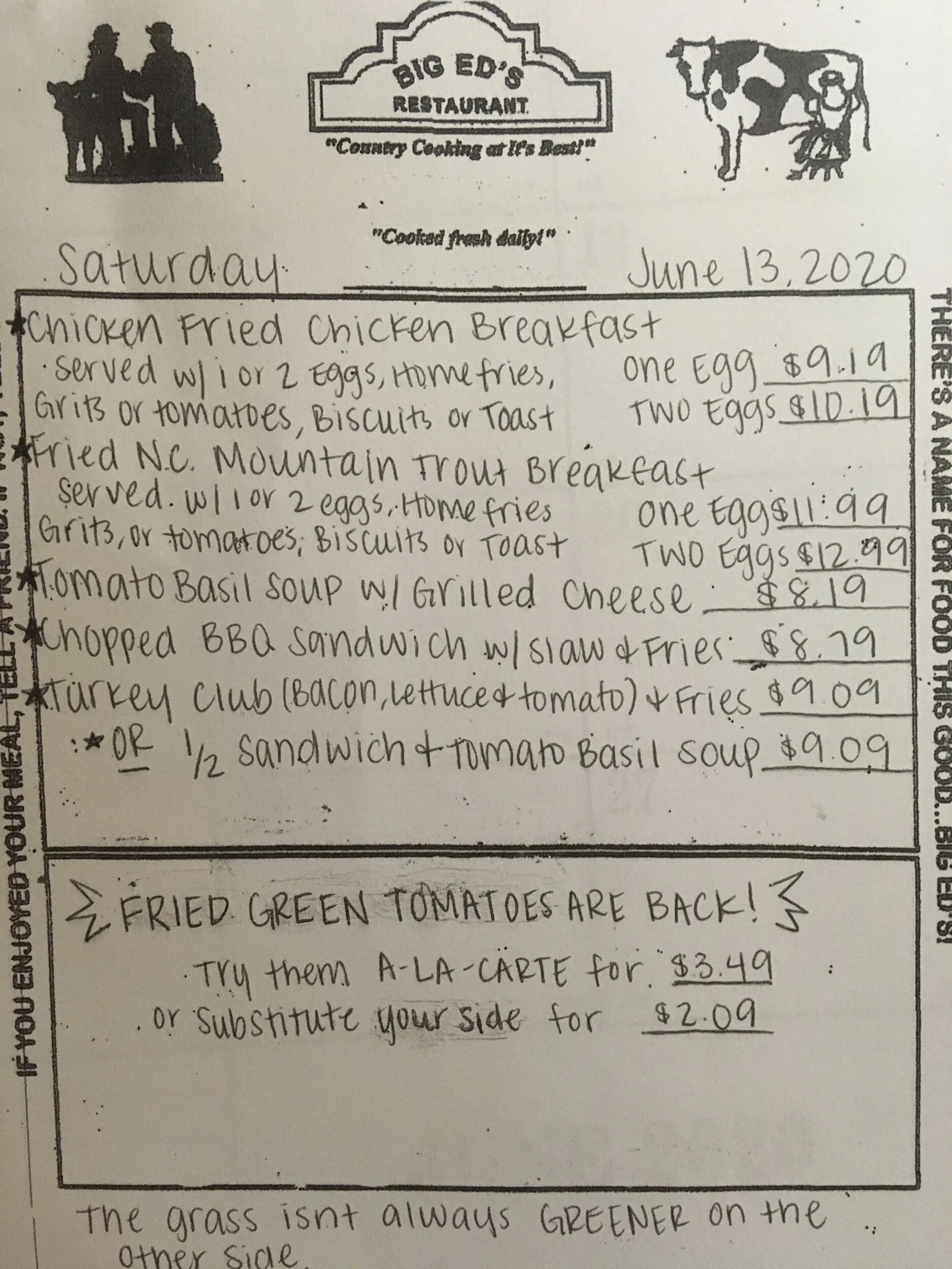 June 13, 2020 Big Ed's June 13, 2020 Big Ed's Weekend specials make for a great treat for your brunch! Big Ed's