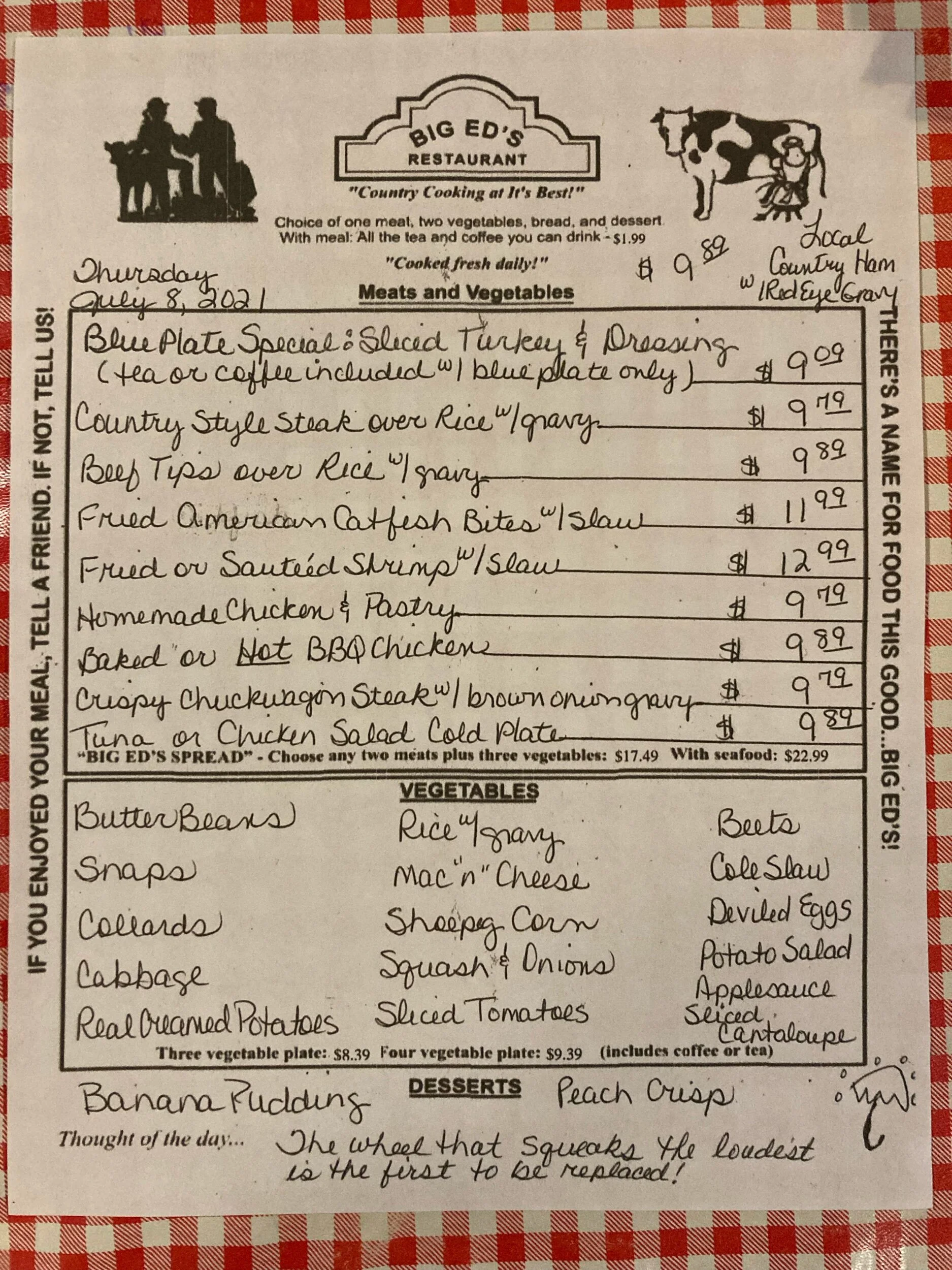 July 8, 2021 Big Ed's July 8, 2021 Big Ed's “The wheel that squeaks the loudest is the first to be replaced!” Big Ed's