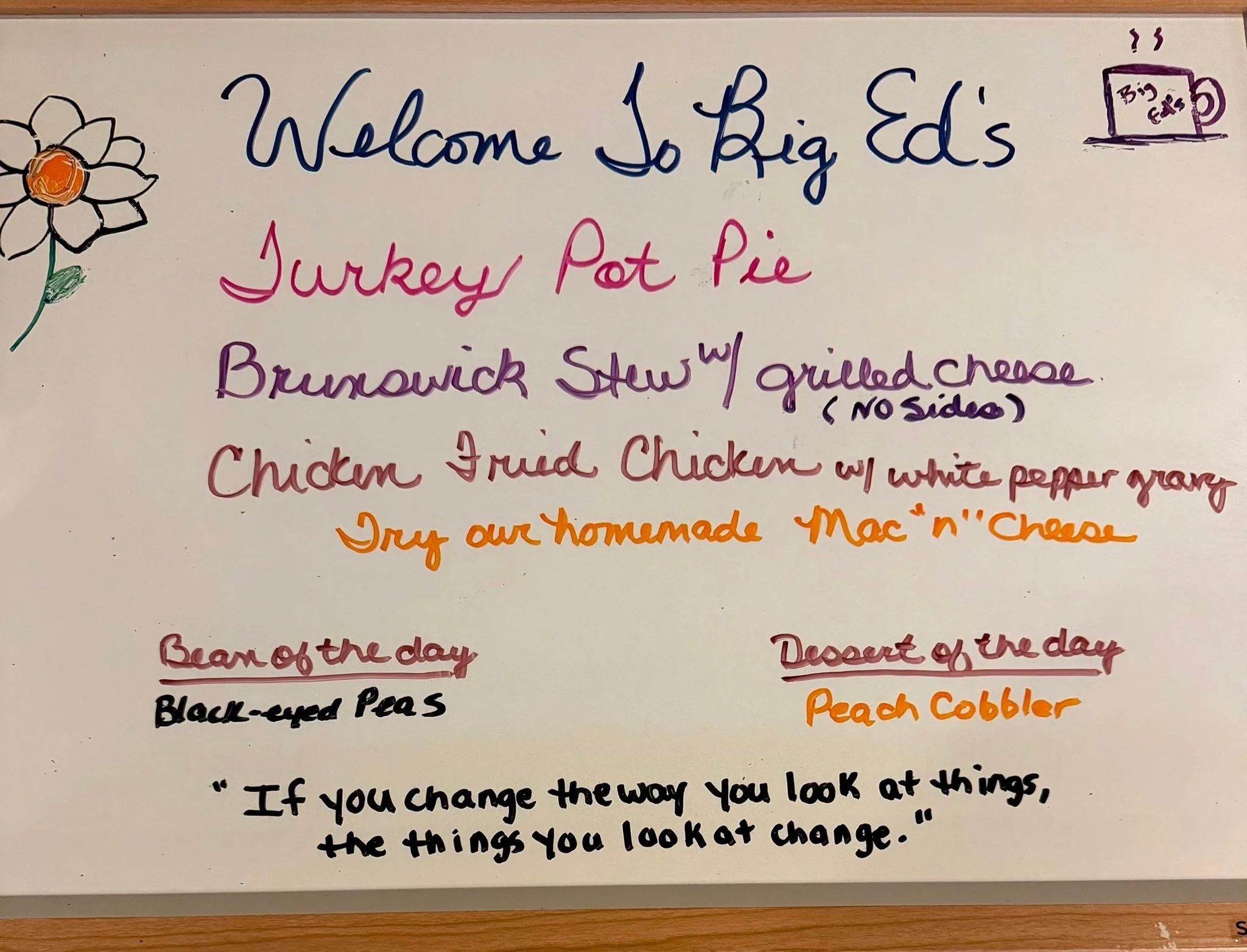 April 15, 2026 Big Ed's April 15, 2026 Big Ed's “If you change the way you look at things, the things you look at change.”Downtown Raleigh’s Southern Country Cooking and Breakfast at its Best! Big Ed's