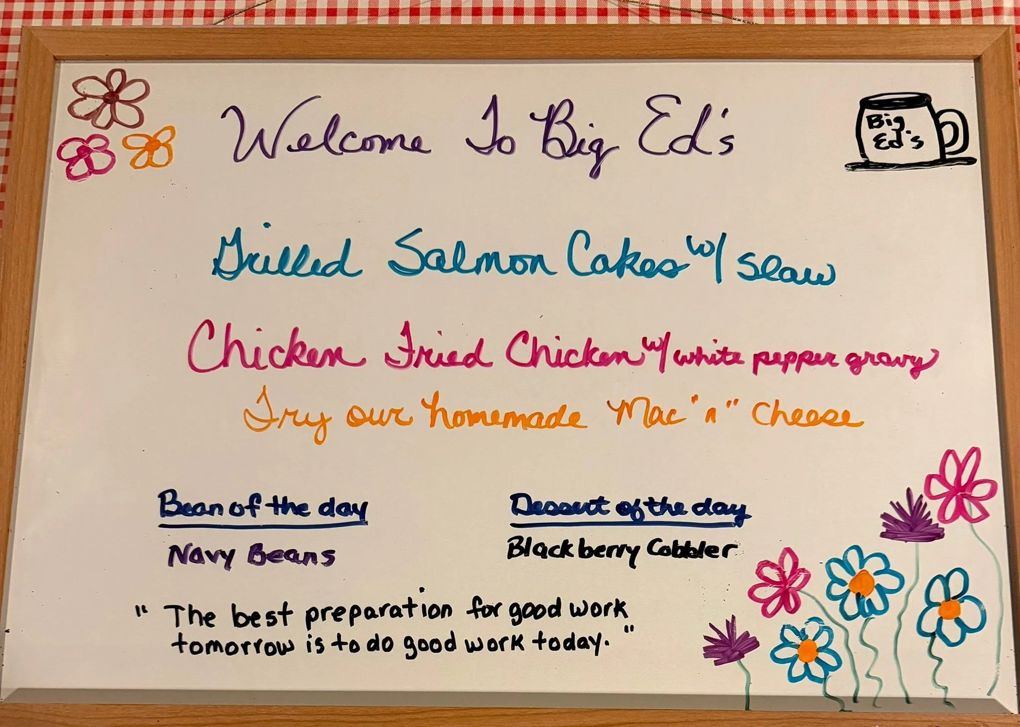 April 23, 2026 Big Ed's April 23, 2026 Big Ed's “The best preparation for good work tomorrow is to do good work today.”Downtown Raleigh’s Southern Country Cooking and Breakfast at its Best! Big Ed's