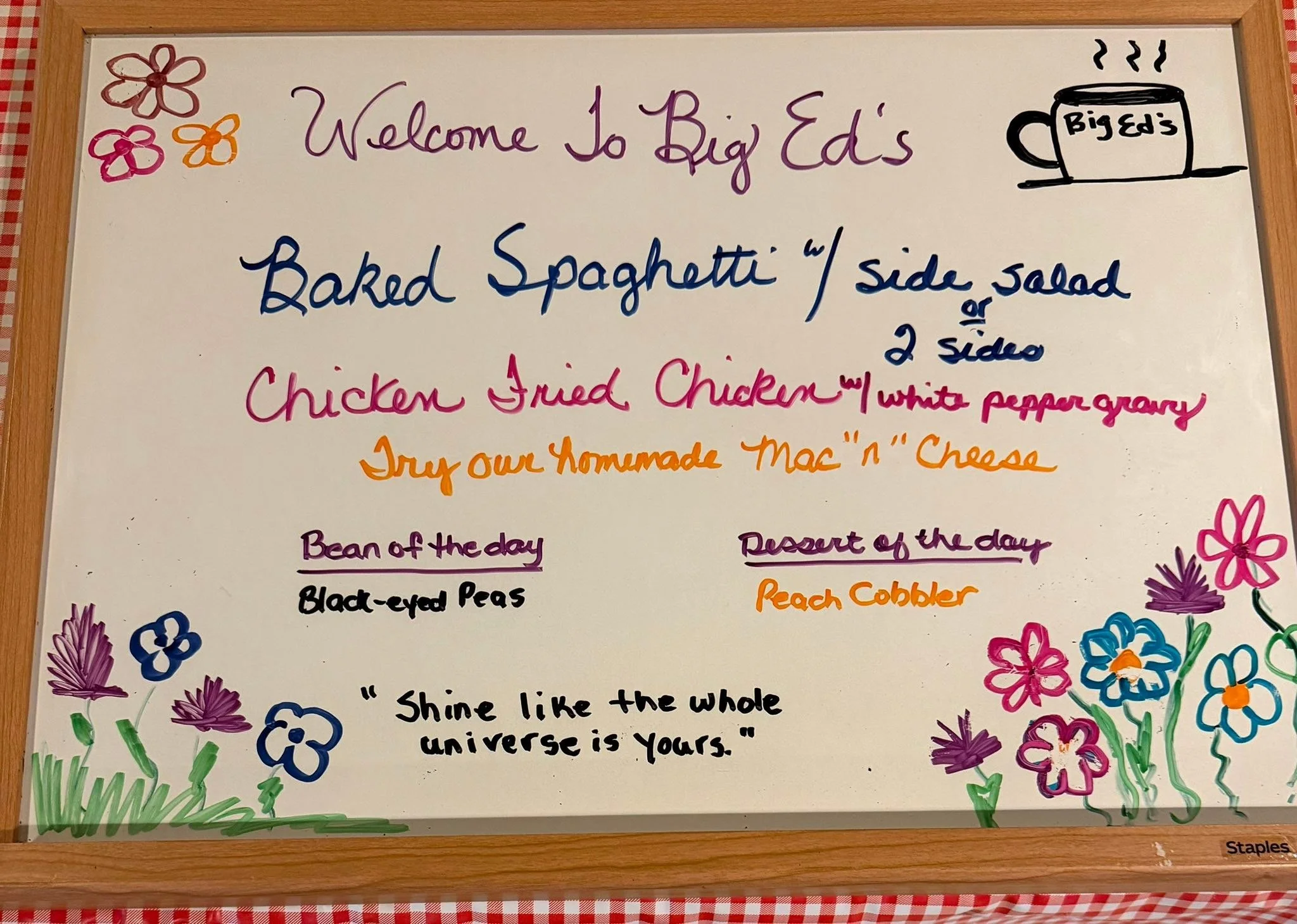 April 28, 2026 Big Ed's April 28, 2026 Big Ed's “Smile like the whole universe is yours.”Downtown Raleigh’s Southern Country Cooking and Breakfast at its Best! Big Ed's