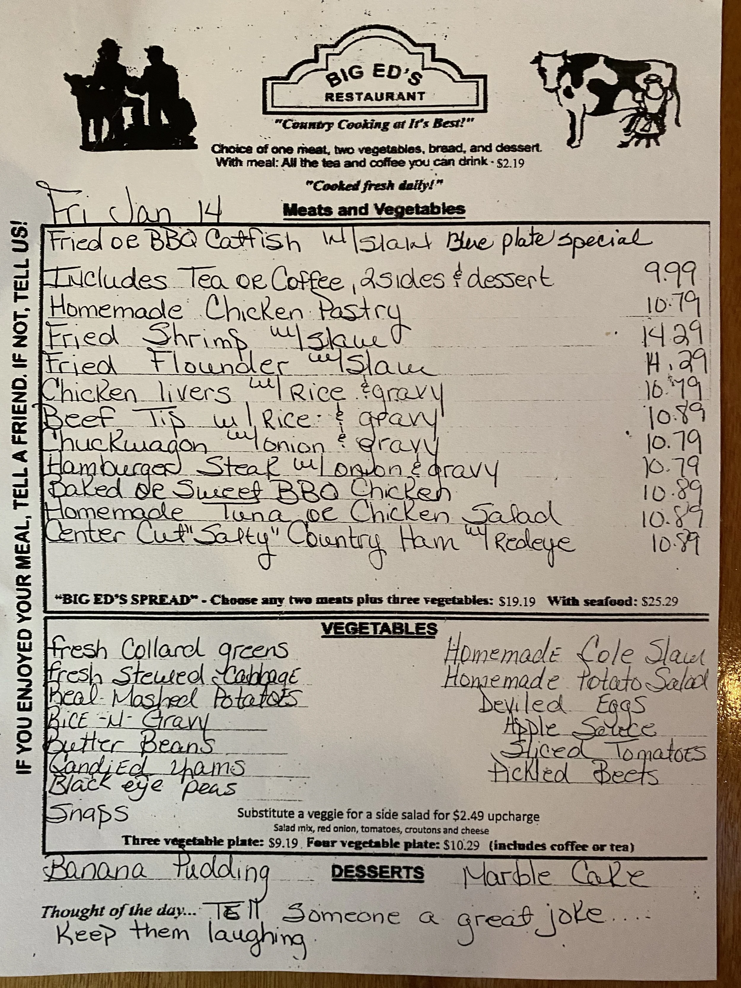 January 14, 2022 Big Ed's January 14, 2022 Big Ed's “Tell someone a great joke. . . keep them laughing!” Big Ed's
