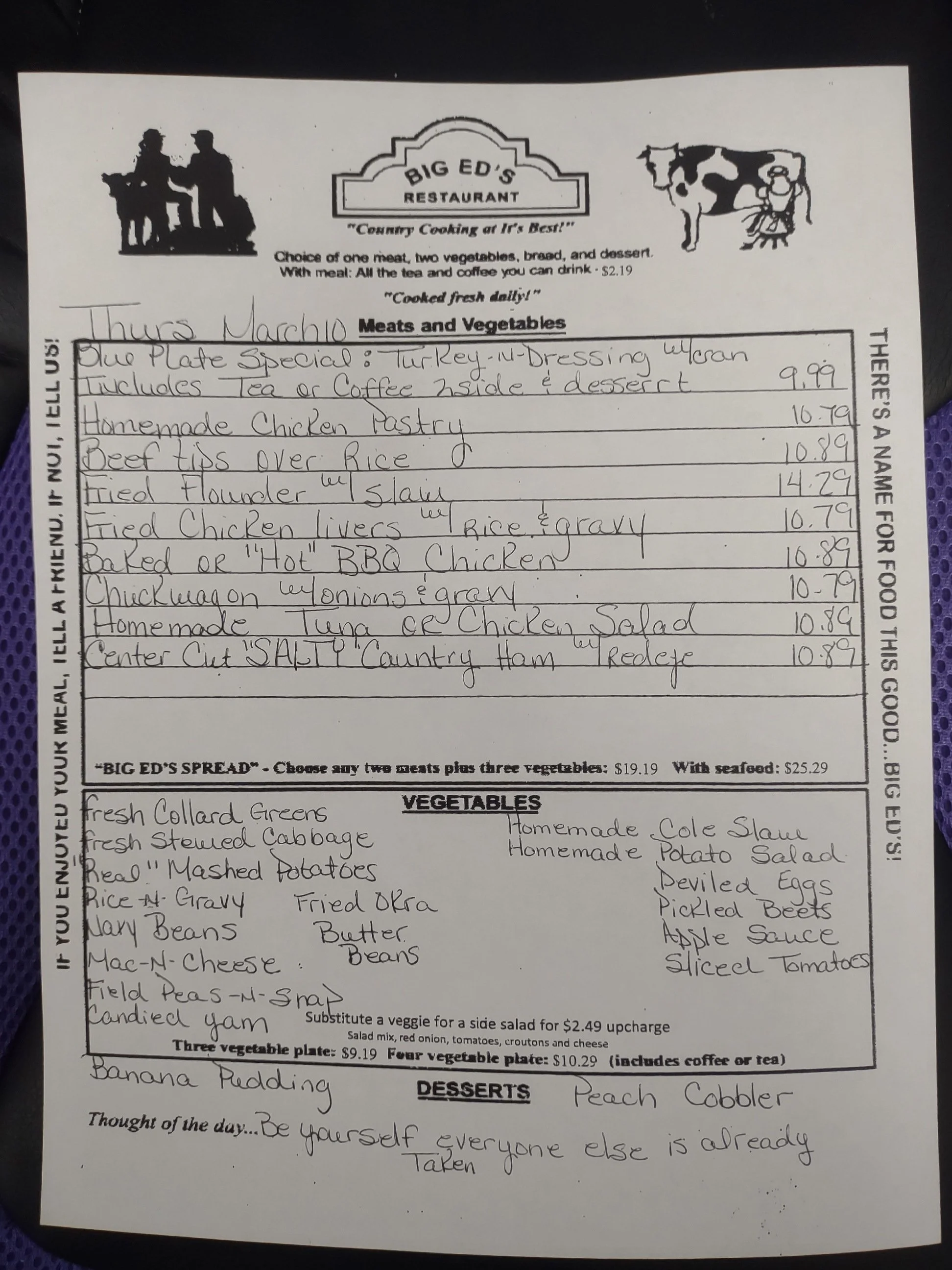 March 10, 2022 Big Ed's March 10, 2022 Big Ed's “Be yourself as everyone else is already taken.” Big Ed's