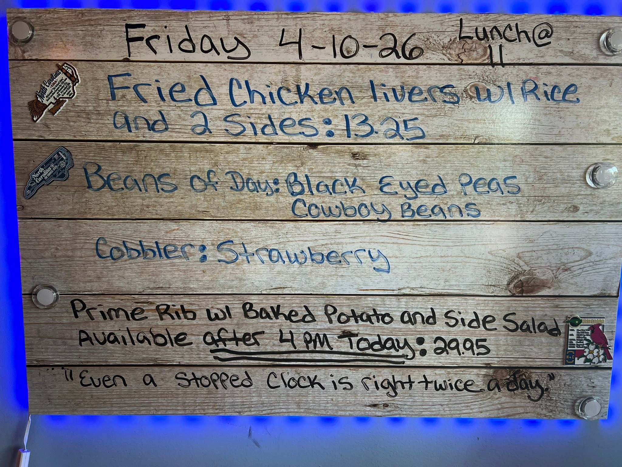 April 10, 2026 Big Ed's April 10, 2026 Big Ed's “Even a stopped clock is right twice a day.” Garner’s Southern Country Cooking and Breakfast at its Best! Big Ed's