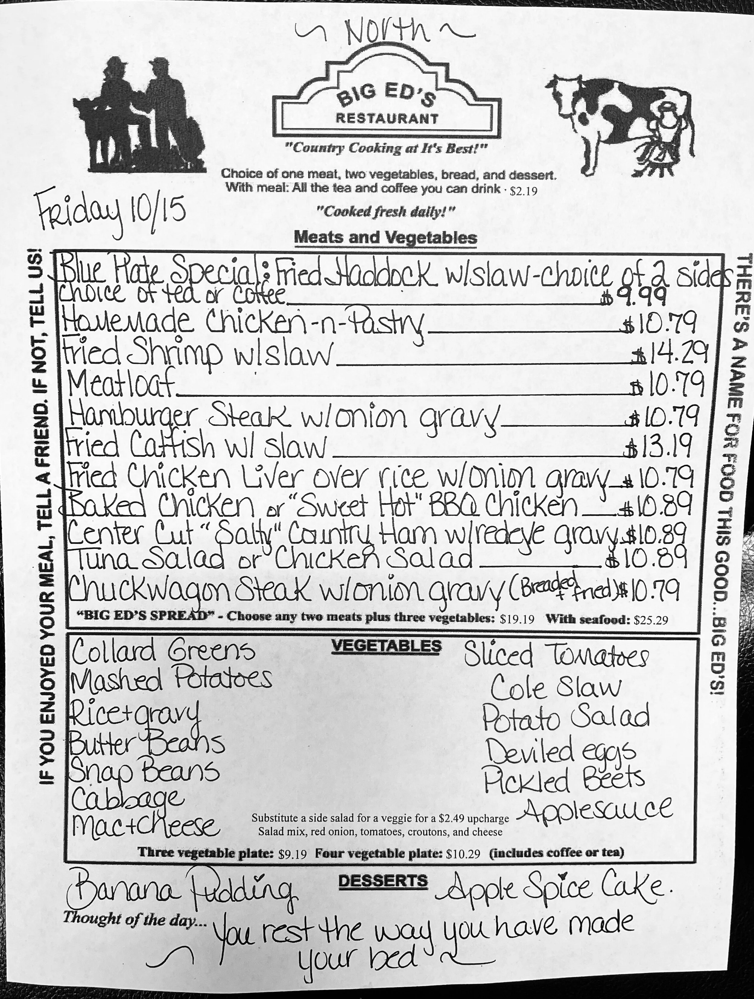 October 15, 2021 Big Ed's October 15, 2021 Big Ed's “ You rest the way you have made your bed.” Big Ed's