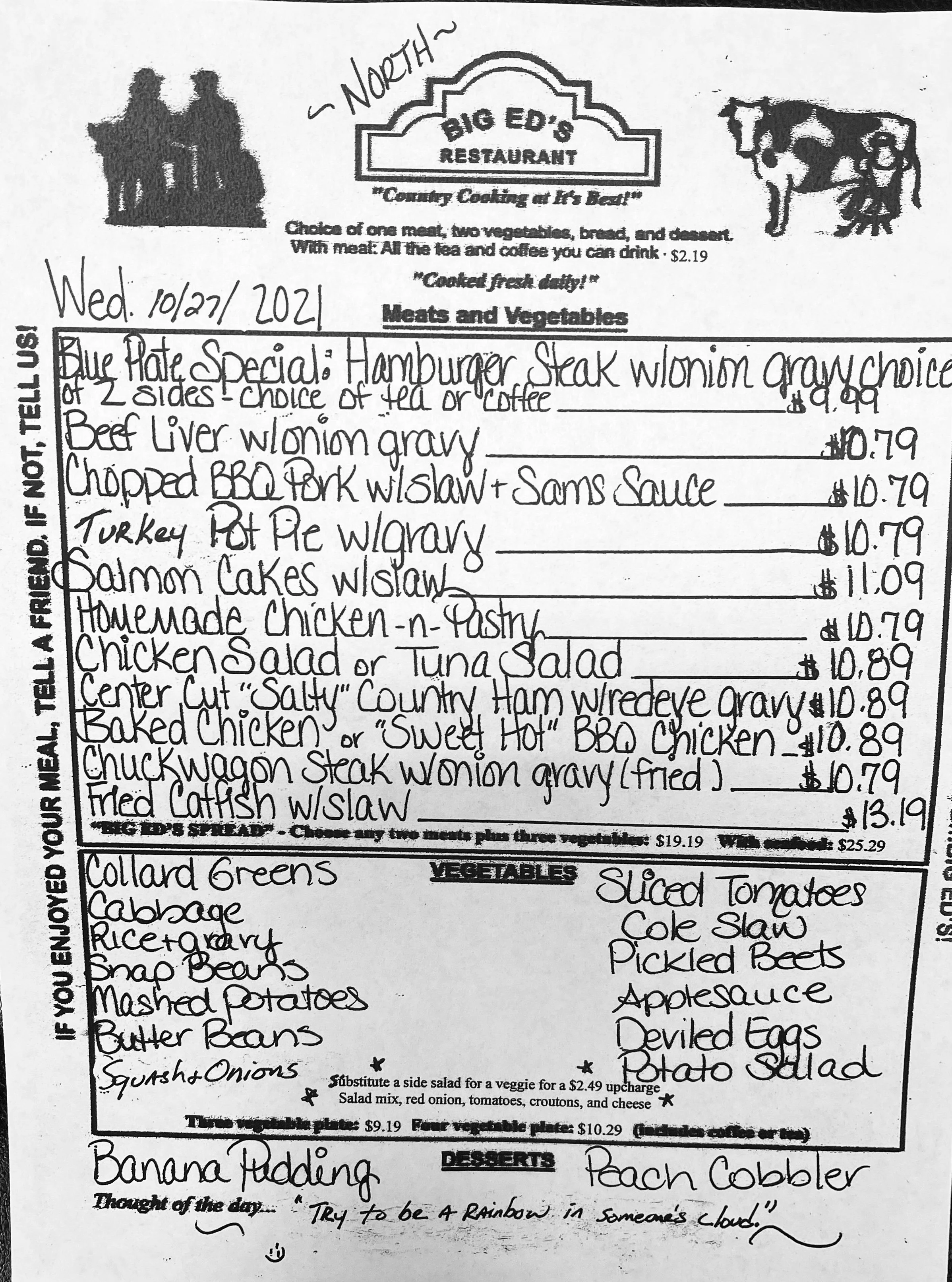 October 27, 2021 Big Ed's October 27, 2021 Big Ed's “ Try to be a rainbow in someone’s cloud.” Big Ed's