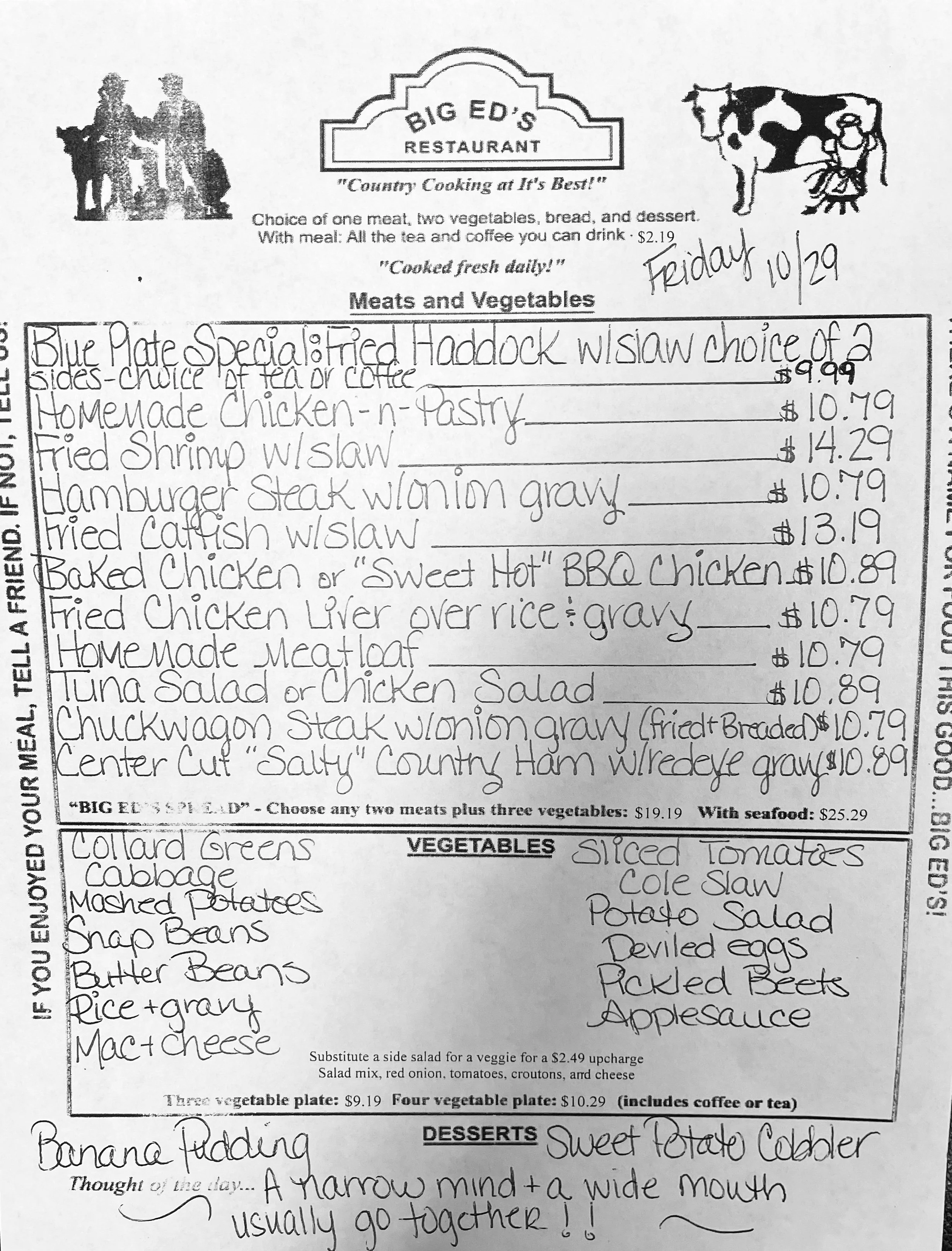 October 29, 2021 Big Ed's October 29, 2021 Big Ed's “ A narrow mind and a wide mouth usually go together.” Big Ed's