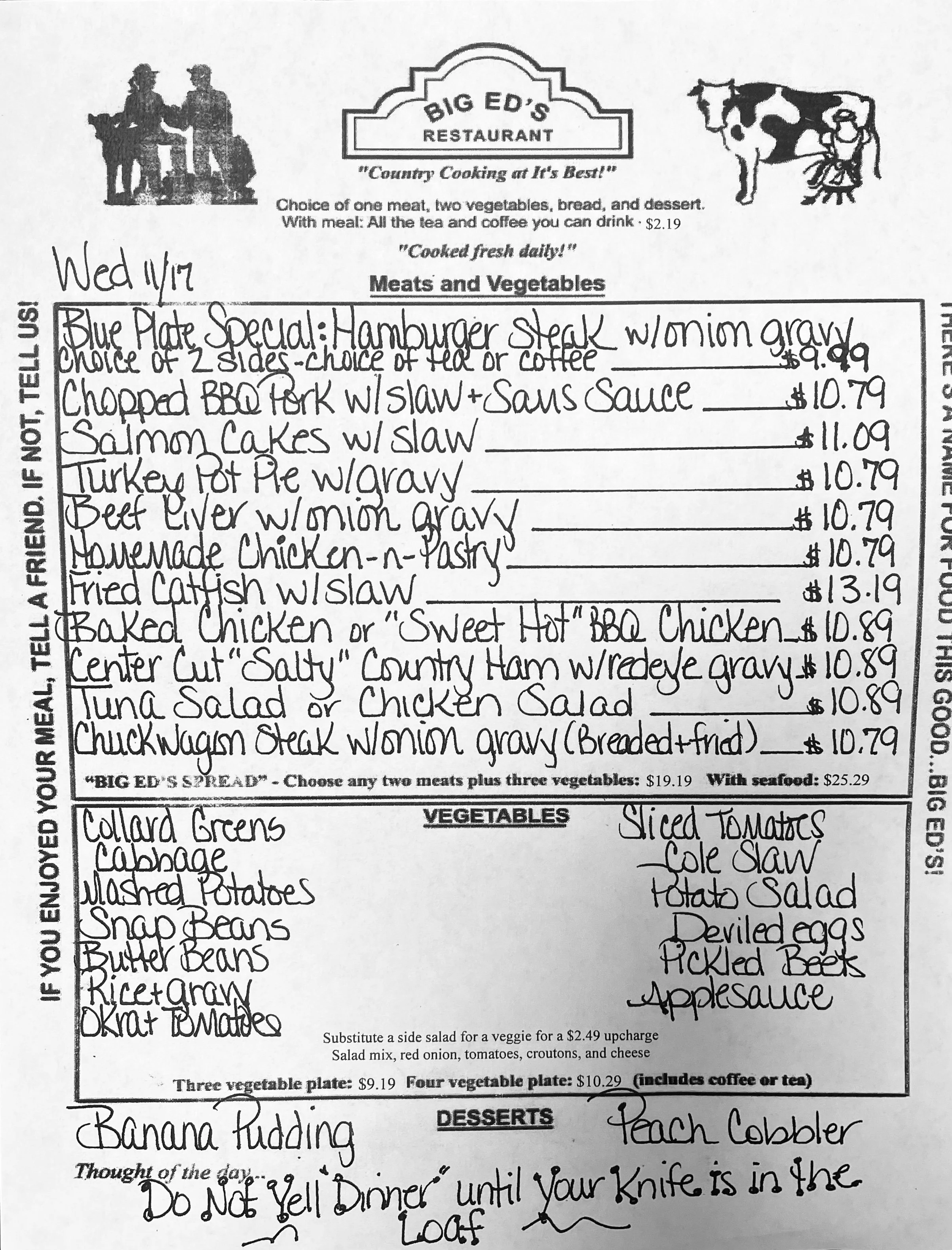 November 17, 2021 Big Ed's November 17, 2021 Big Ed's “ Do not yell dinner until you knife is in the loaf.” Big Ed's