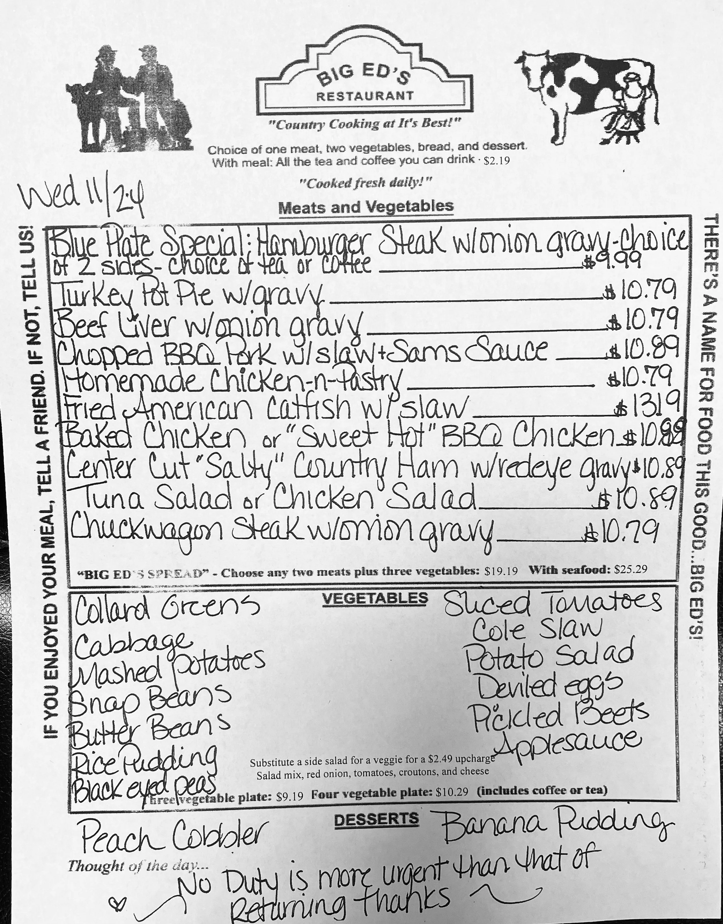 November 24, 2021 Big Ed's November 24, 2021 Big Ed's “ No duty is more urgent than that of returning thanks.” Big Ed's