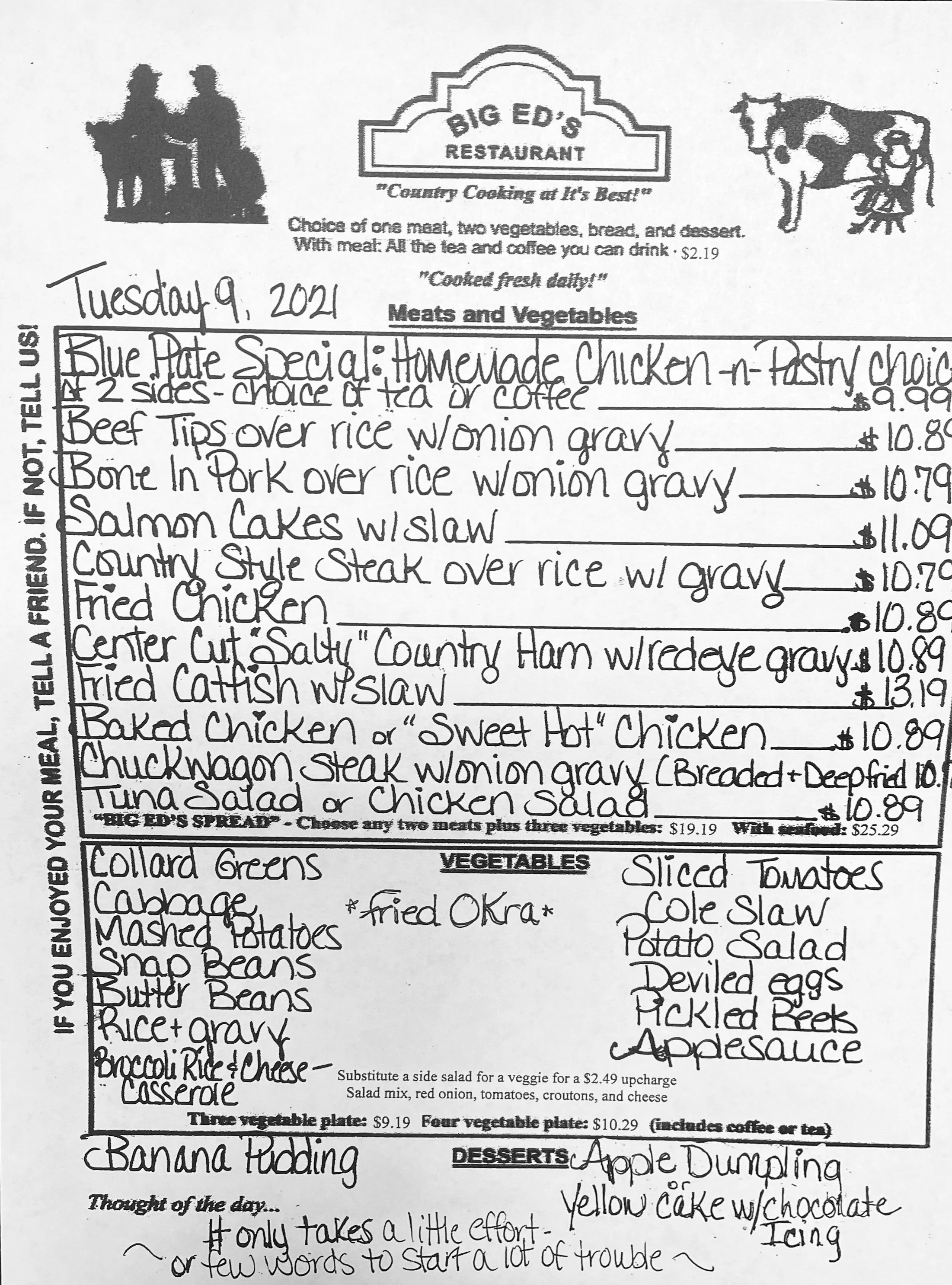 November 9, 2021 Big Ed's November 9, 2021 Big Ed's “ It only takes a little effort or few words to start a lot of trouble.” Big Ed's