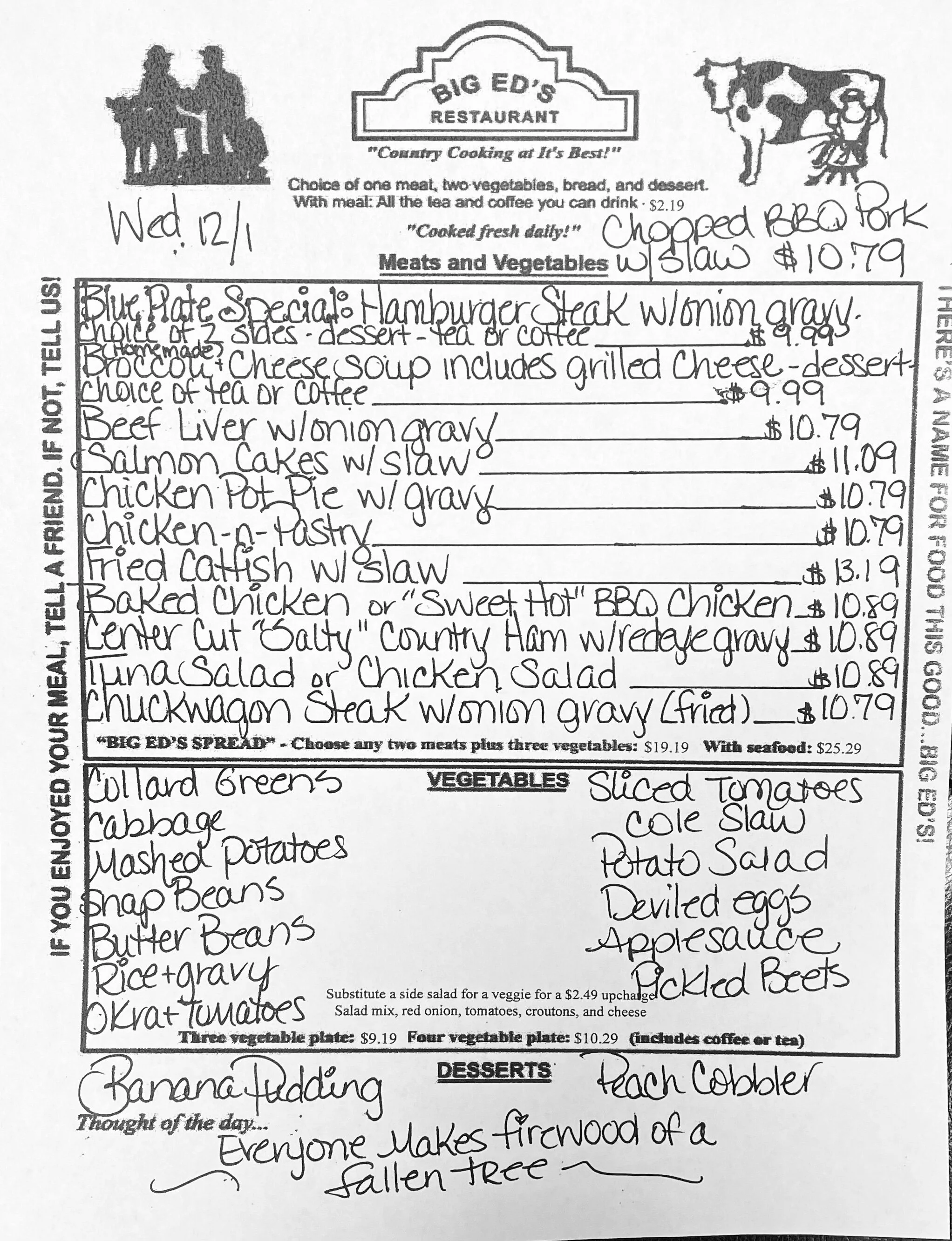 December 1, 2021 Big Ed's December 1, 2021 Big Ed's “ Everyone makes firewood of a fallen tree,” Big Ed's
