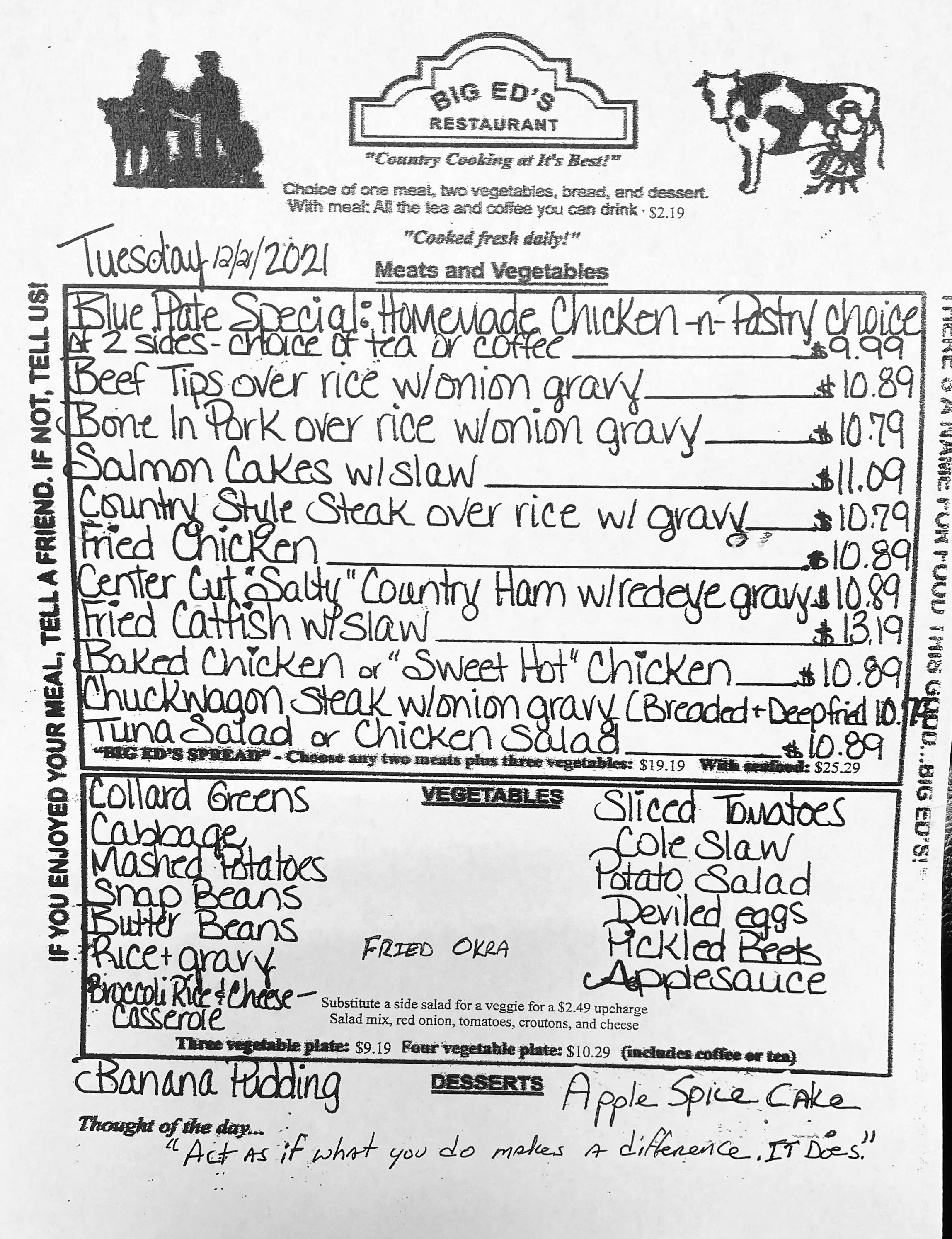 December 21, 2021 Big Ed's December 21, 2021 Big Ed's “ Act as if what you do makes a difference. It does.” Big Ed's