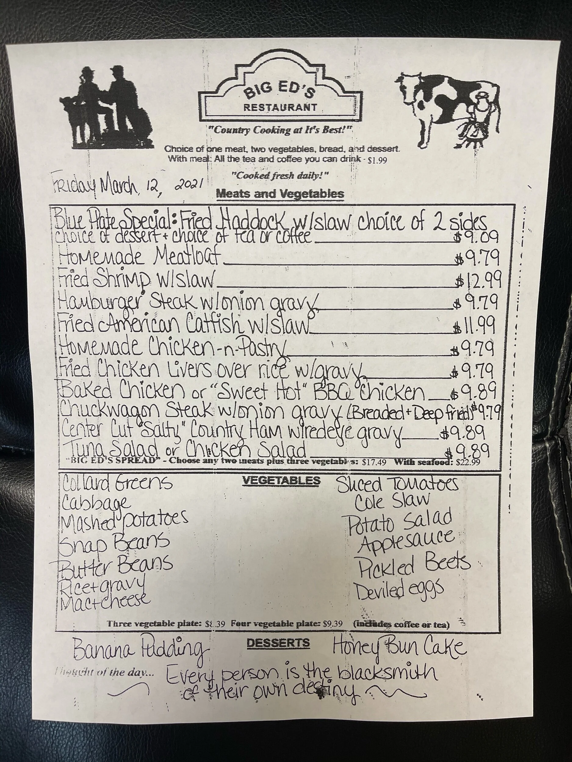 March 12, 2021 Big Ed's March 12, 2021 Big Ed's “ Every person is the blacksmith of their own destiny.” Big Ed's