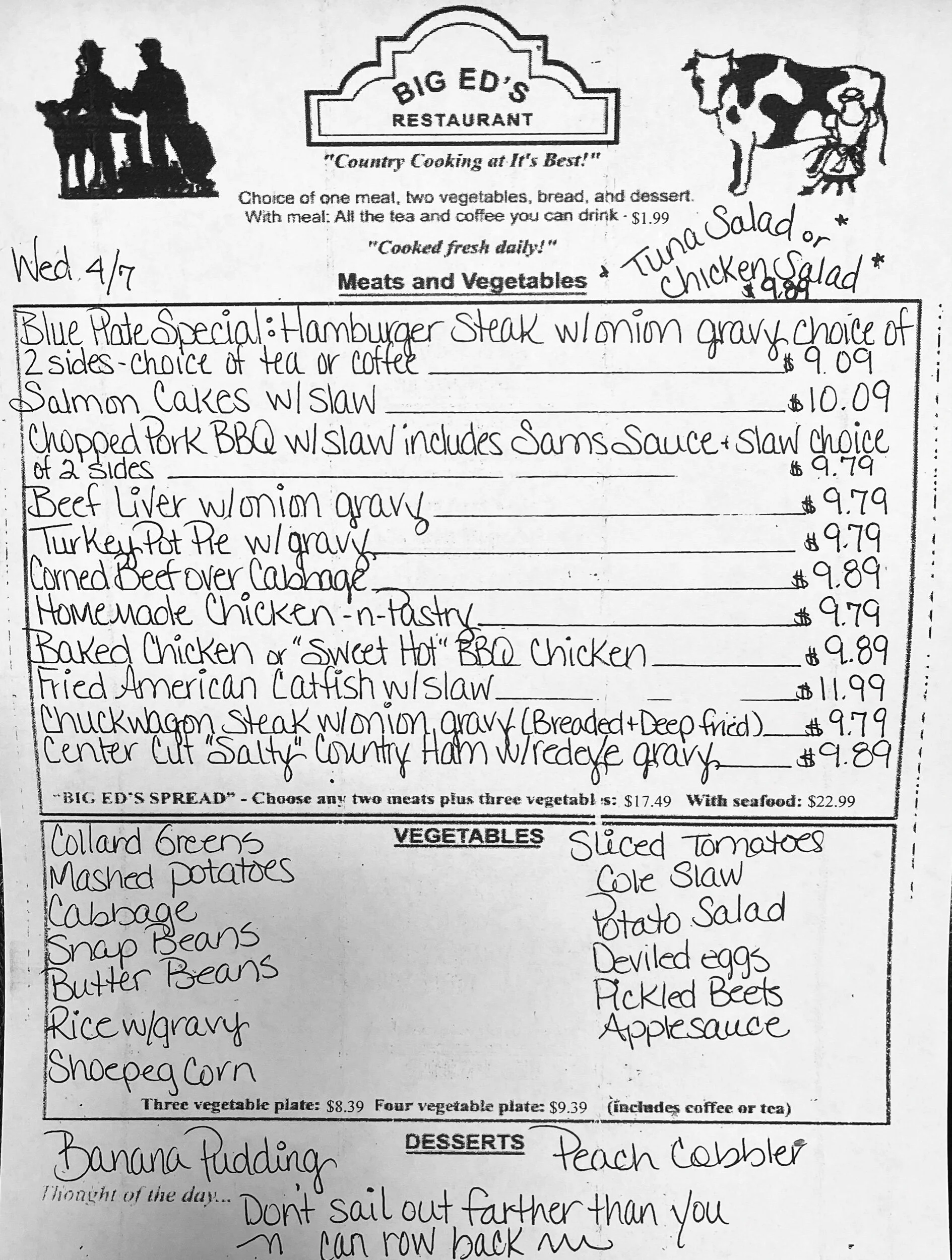 April 7, 2021 Big Ed's April 7, 2021 Big Ed's “Don’t sail out farther than you can row back.” Big Ed's