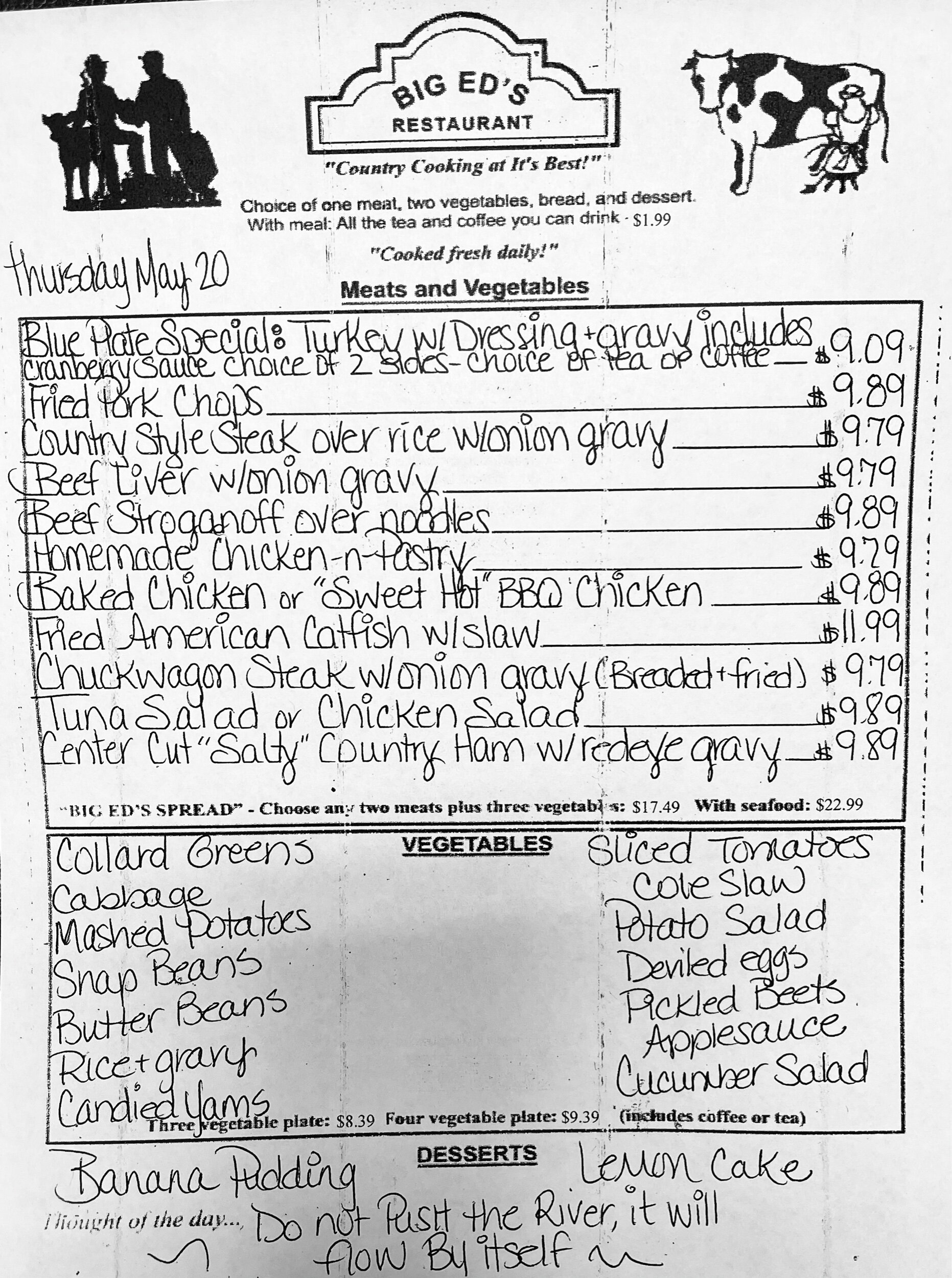 May 20, 2021 Big Ed's May 20, 2021 Big Ed's “ Do not push the river it will flow by itself.” Big Ed's
