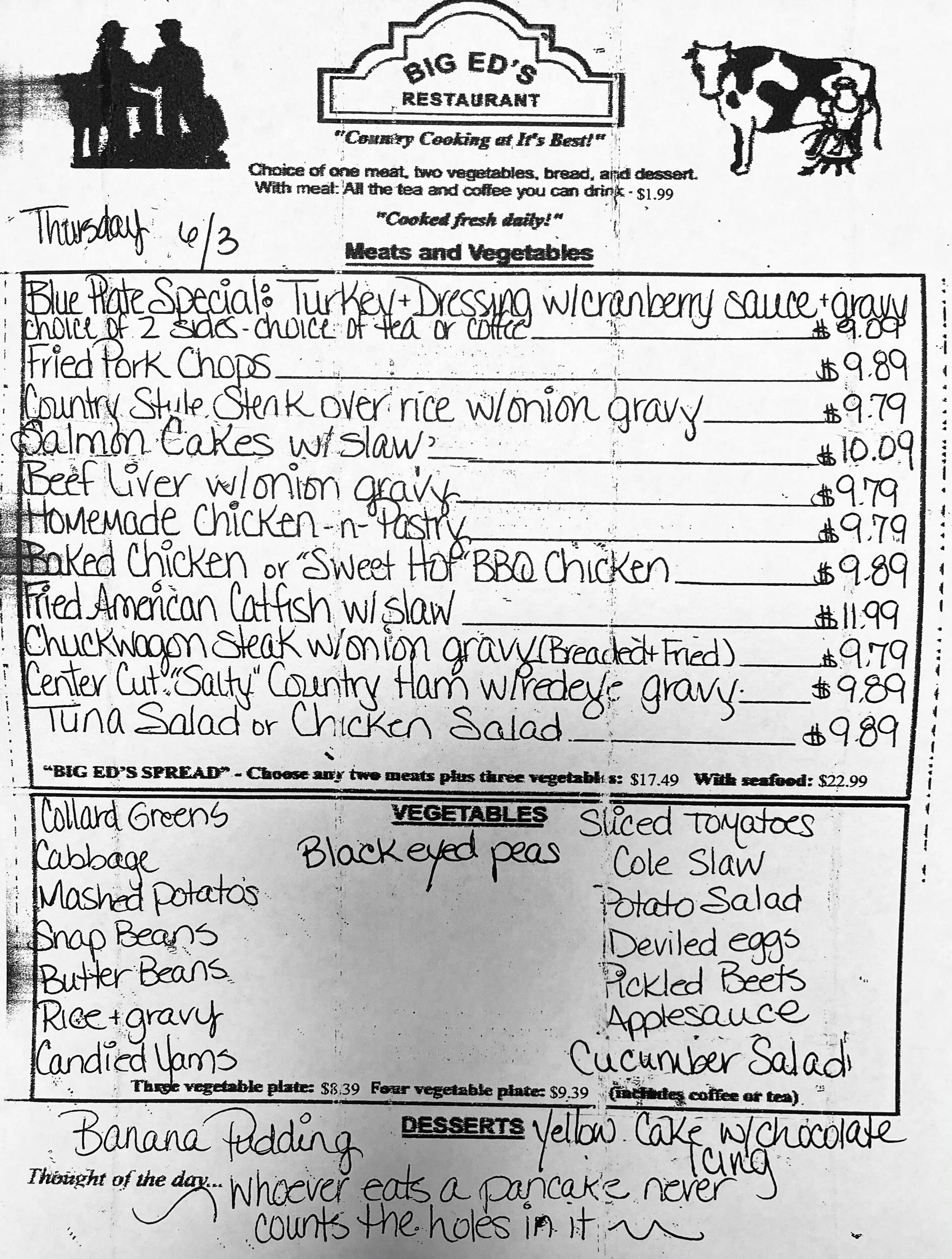 June 3, 2021 Big Ed's June 3, 2021 Big Ed's “ Whoever eats a pancake never counts the holes in it.” Big Ed's
