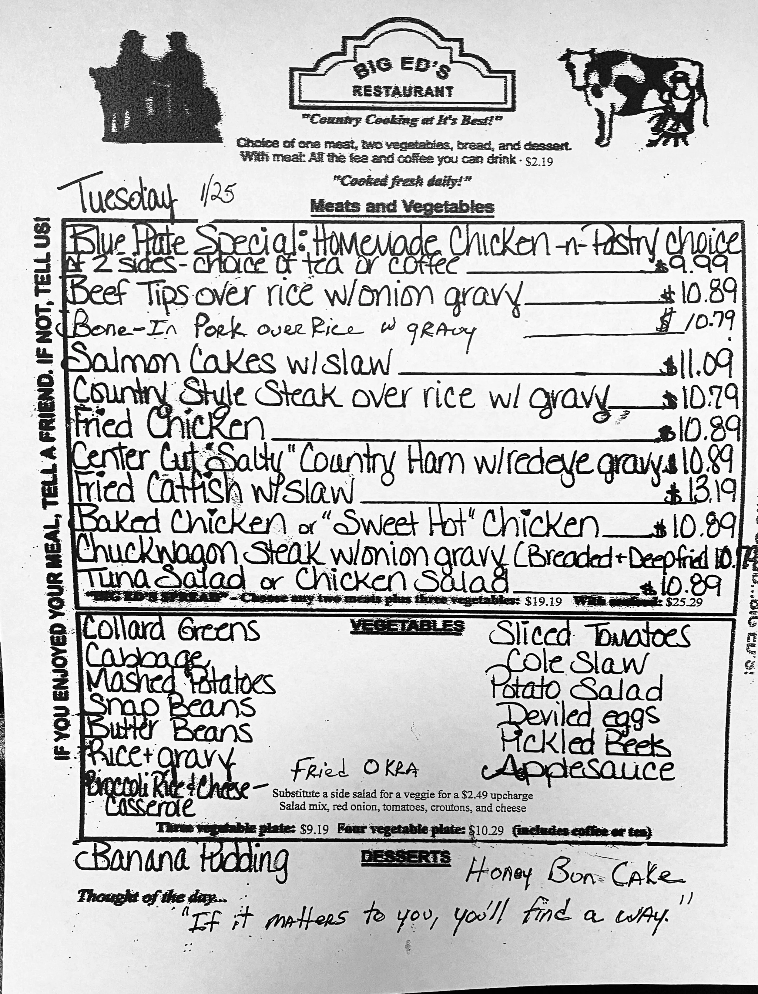 January 25, 2022 Big Ed's January 25, 2022 Big Ed's “ If it matters to you, you’ll find a way.” Big Ed's