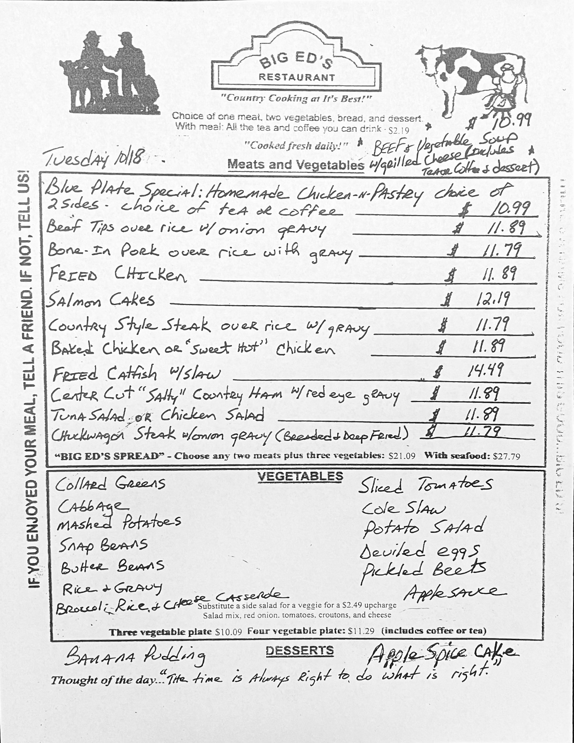 October 18, 2022 Big Ed's October 18, 2022 Big Ed's “ The time is always right to do what is right.” Big Ed's