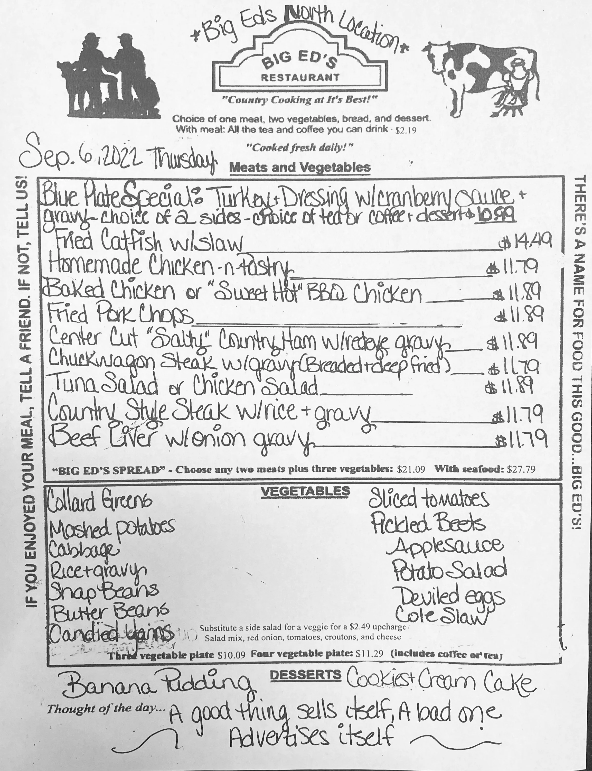 October 6, 2022 Big Ed's October 6, 2022 Big Ed's “ A good thing sells itself, a bad one advertises itself.” Big Ed's
