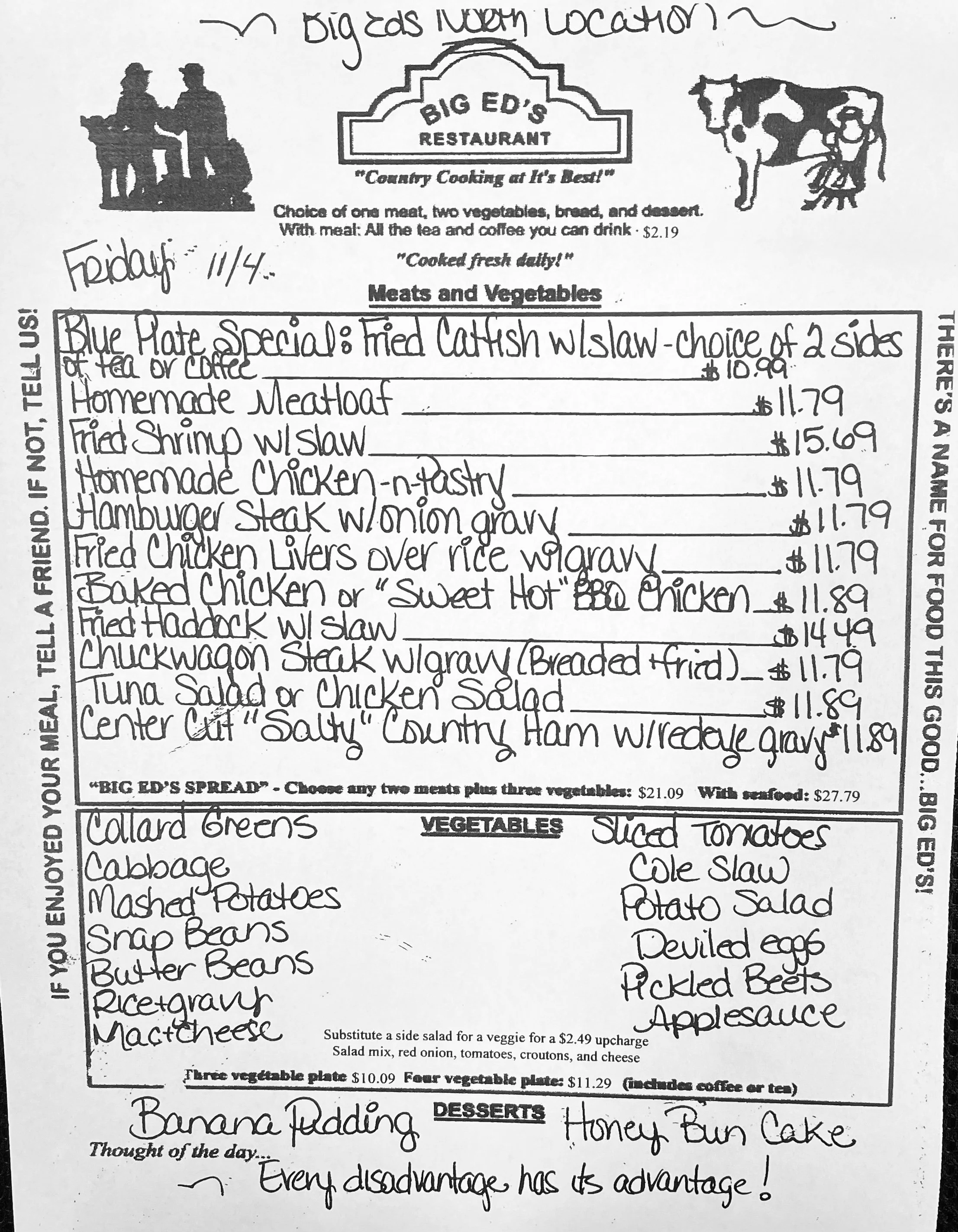 November 4, 2022 Big Ed's November 4, 2022 Big Ed's “ Every disadvantage has its advantage.” Big Ed's