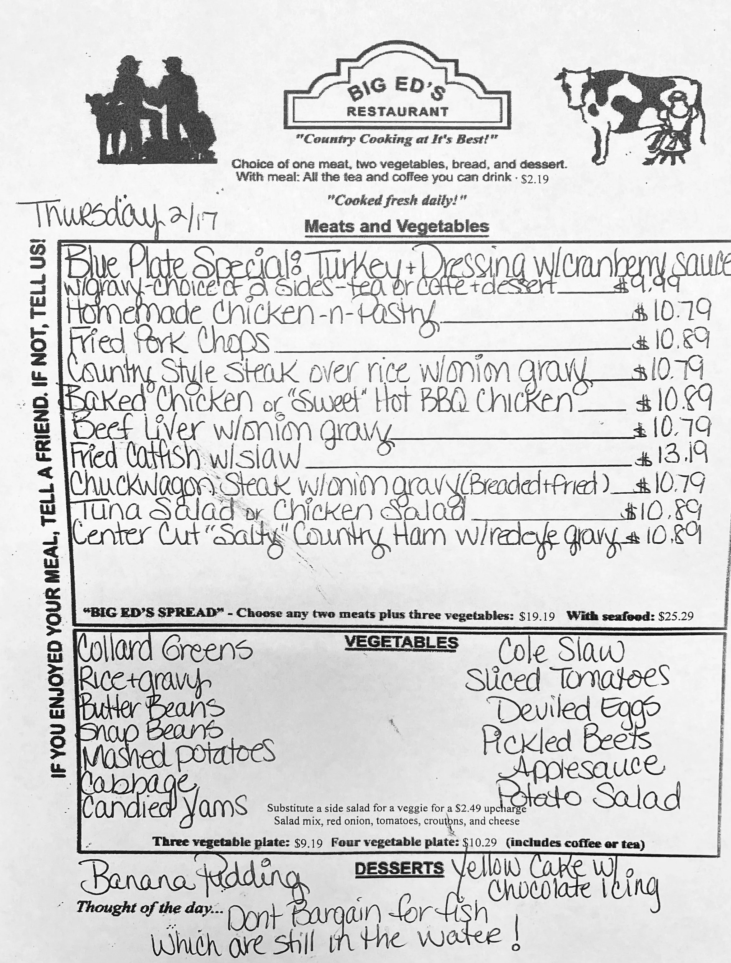 February 17, 2022 Big Ed's February 17, 2022 Big Ed's “ Don’t bargain for fish which are still in the water.” Big Ed's