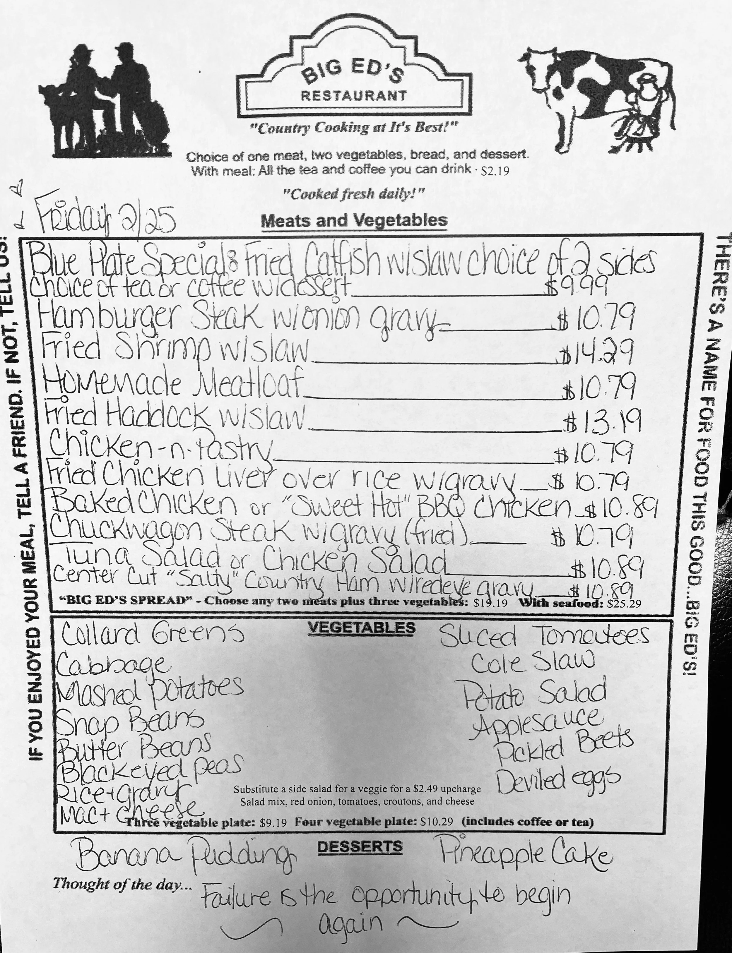February 25, 2022 Big Ed's February 25, 2022 Big Ed's “ Failure is the opportunity to begin again.” Big Ed's