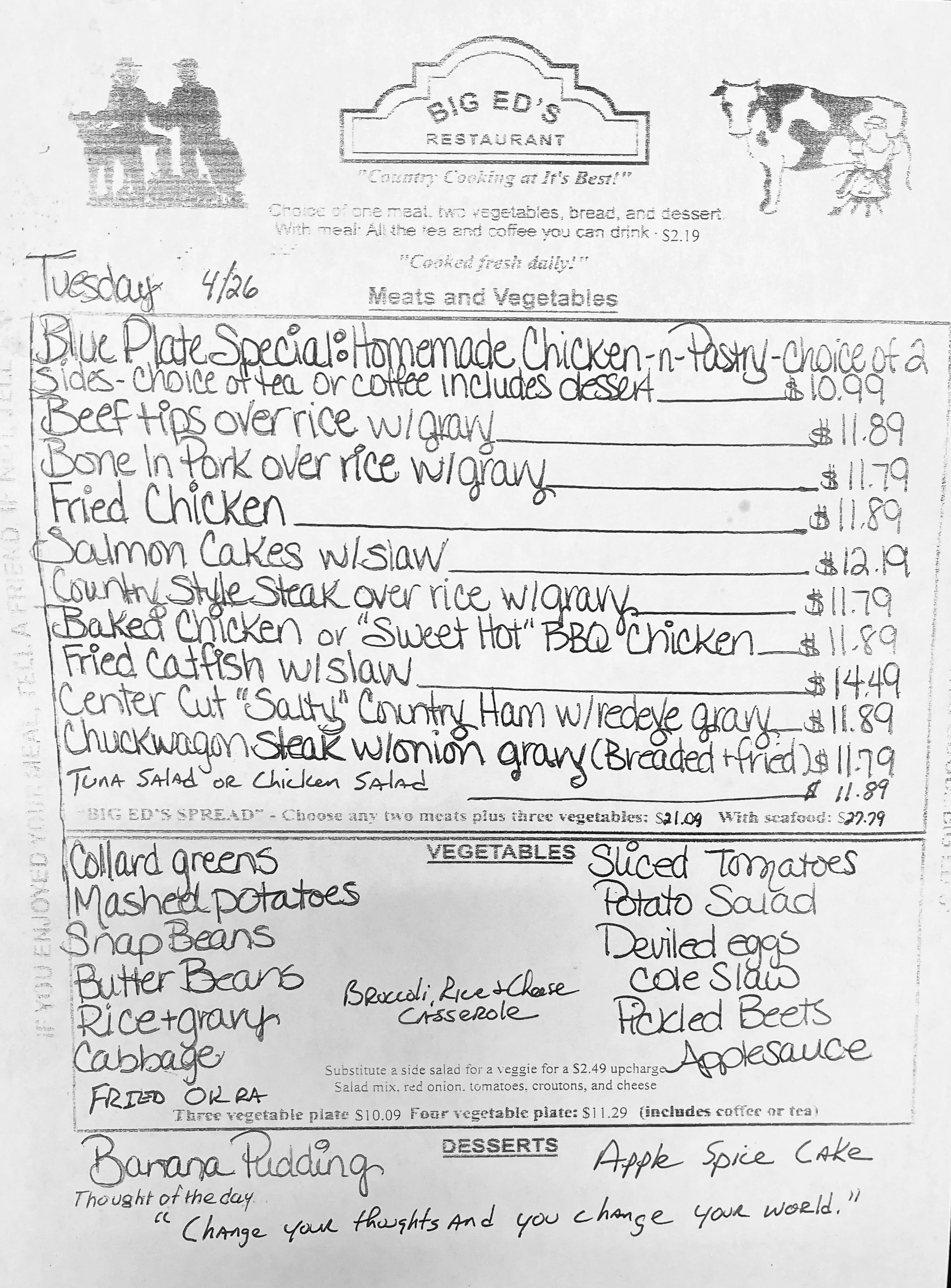 April 26, 2022 Big Ed's April 26, 2022 Big Ed's “ Change your thoughts and you change your world.” Big Ed's
