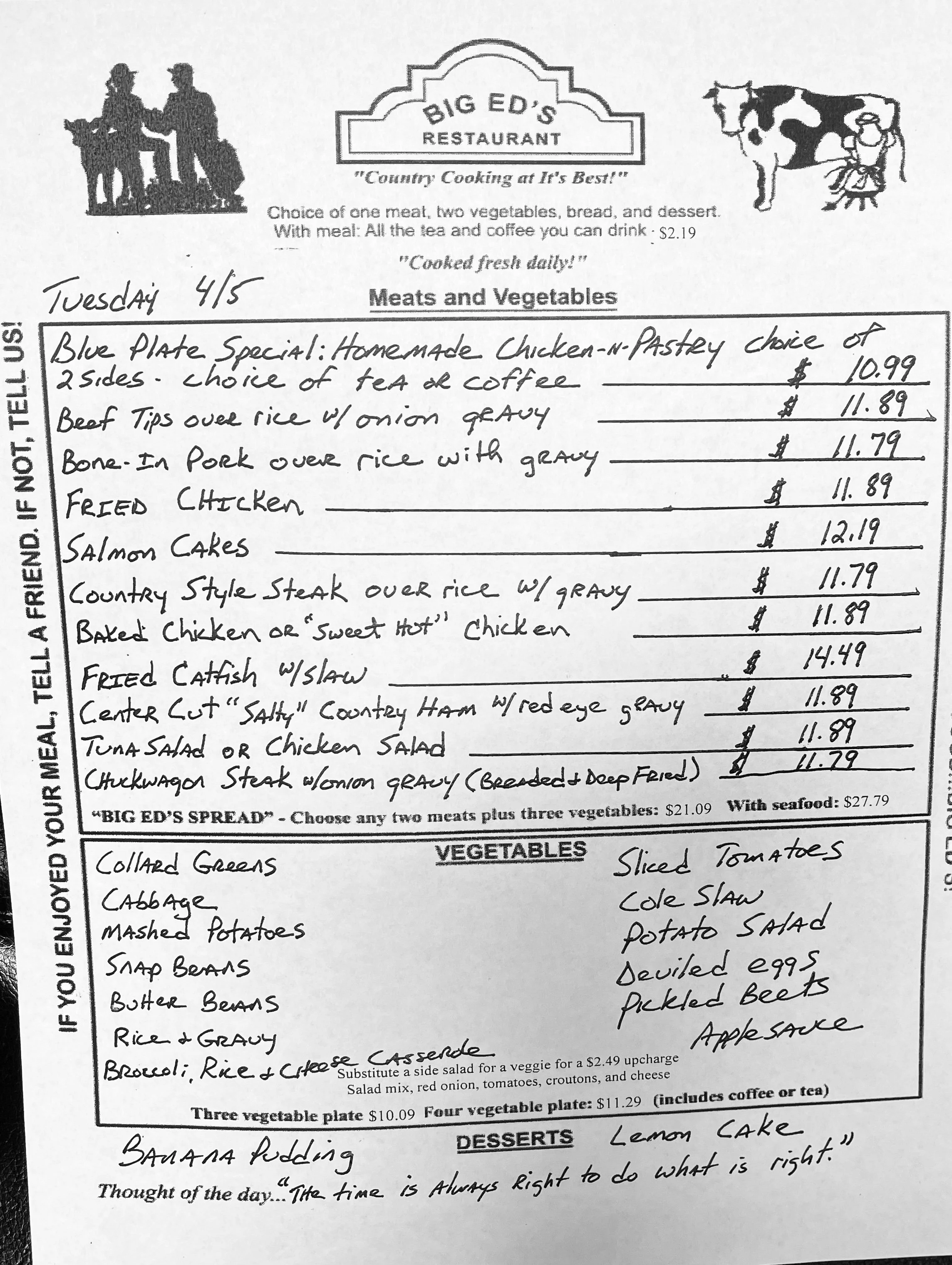 April 5, 2022 Big Ed's April 5, 2022 Big Ed's “ The time is always right to do what is right.” Big Ed's