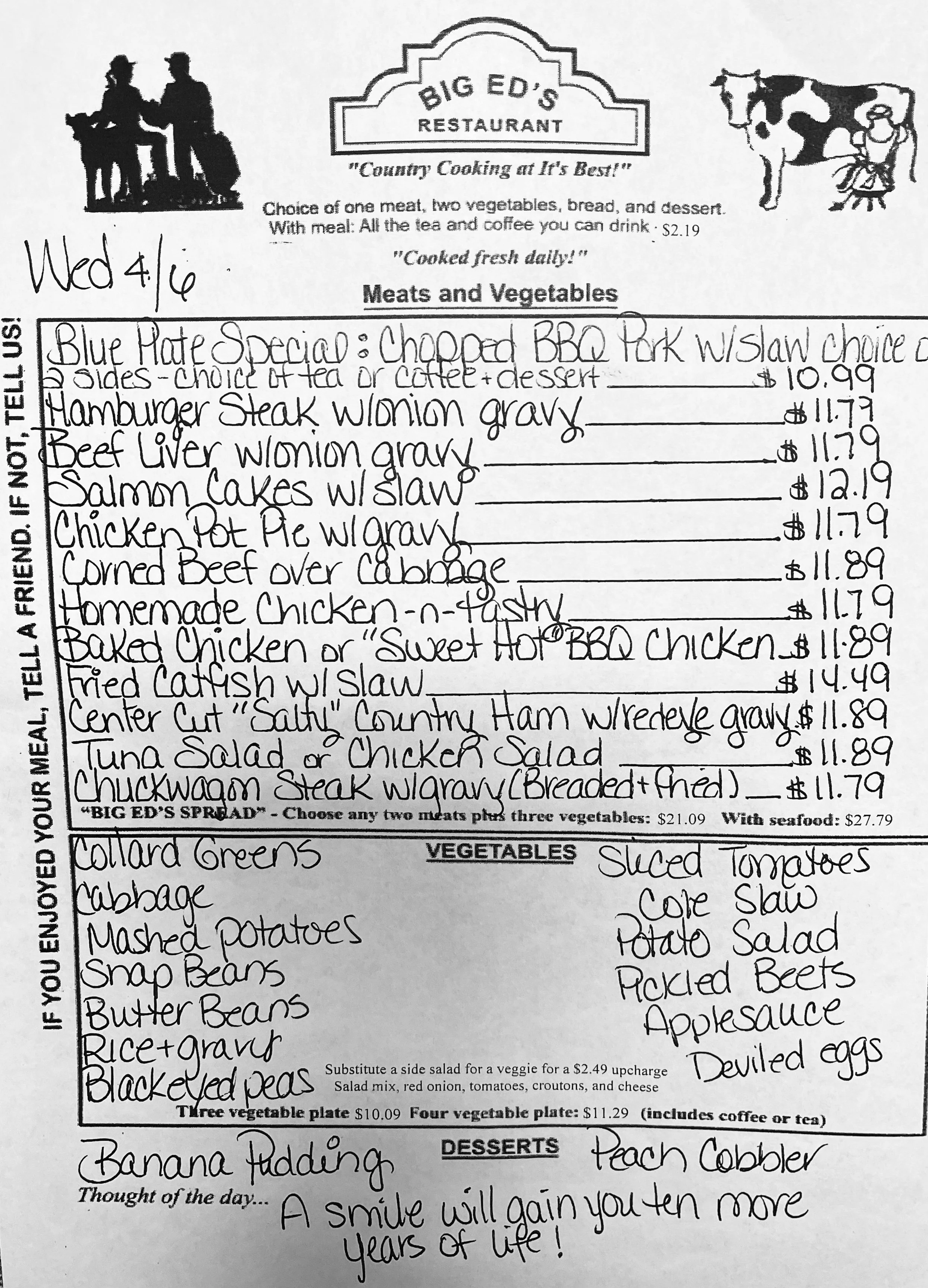 April 6, 2022 Big Ed's April 6, 2022 Big Ed's “ A smile will gain you ten more years of life.” Big Ed's