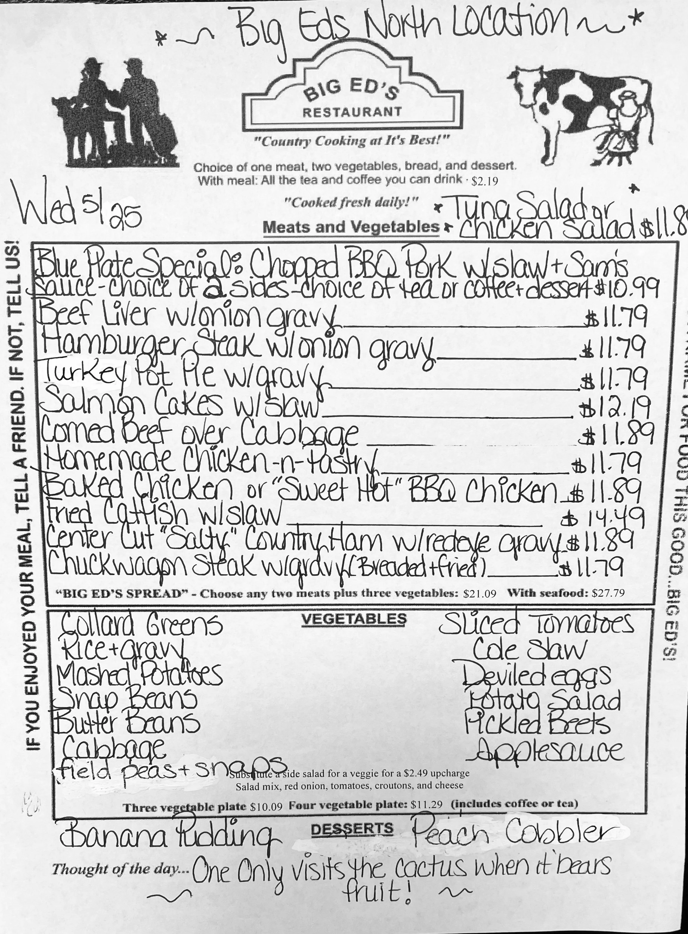 May 25, 2022 Big Ed's May 25, 2022 Big Ed's “ One only visits the cactus when it bears fruit.” Big Ed's