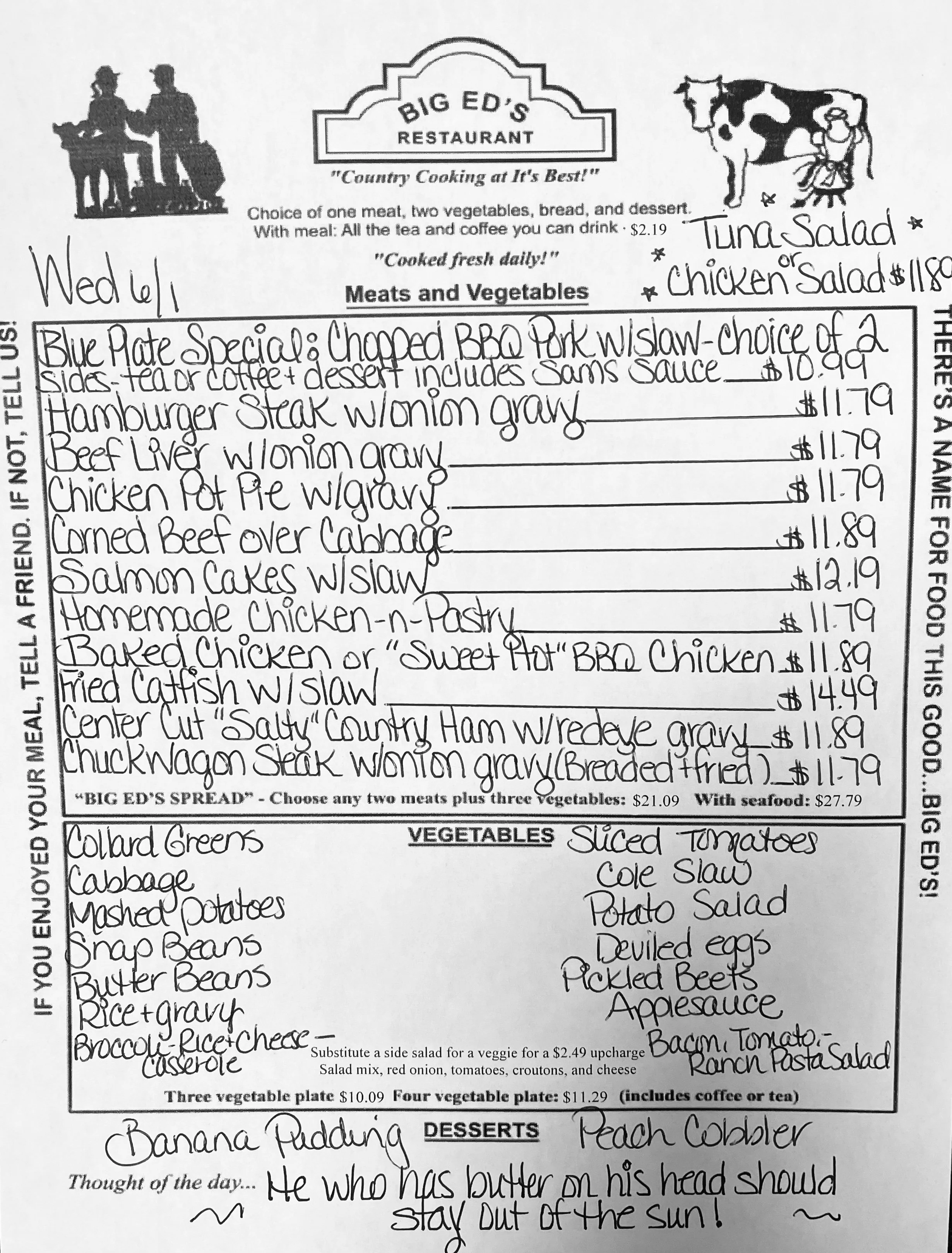 June 1, 2022 Big Ed's June 1, 2022 Big Ed's “ He who has butter on his head should stay out of the sun.” Big Ed's