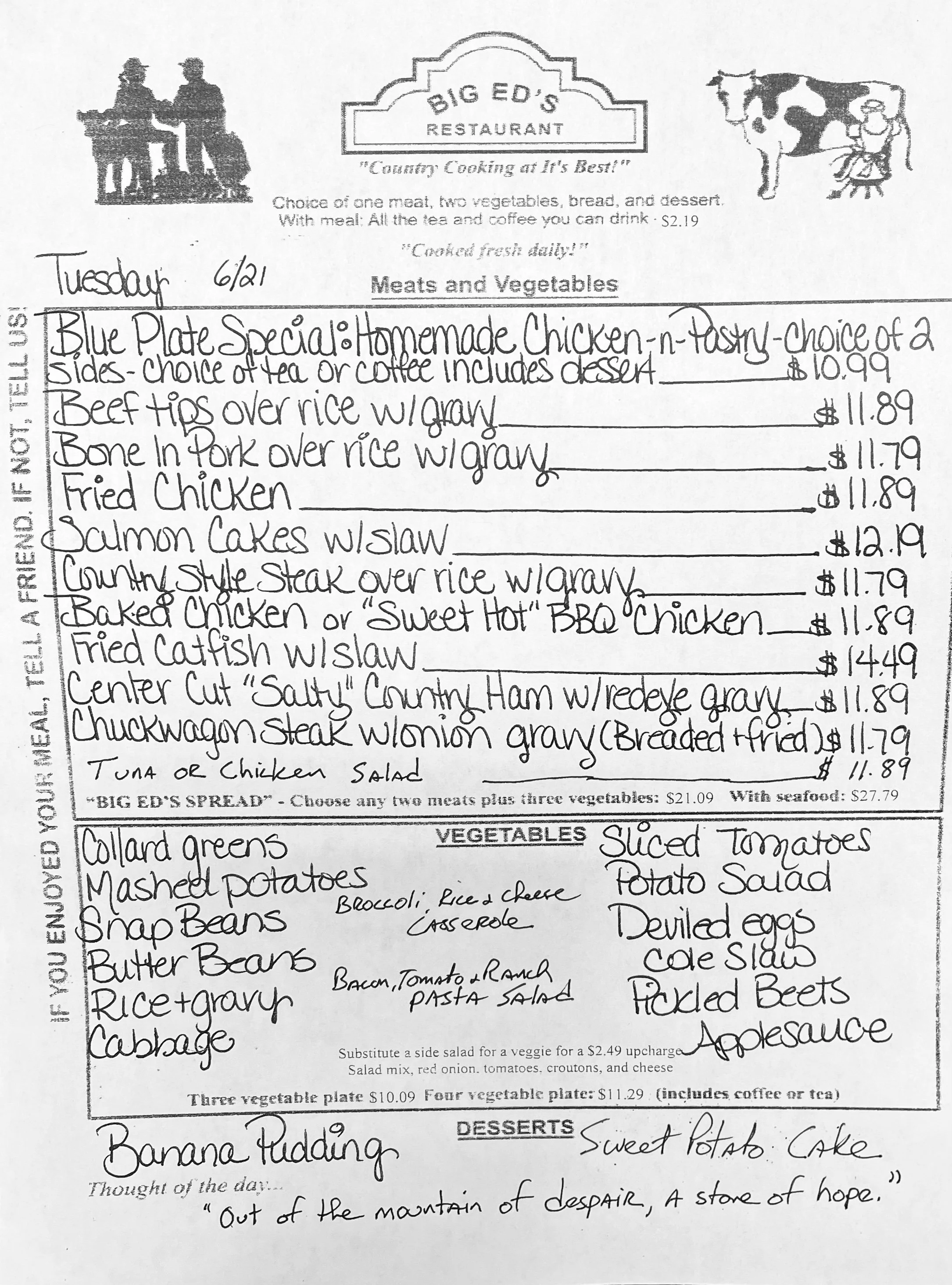 June 21, 2022 Big Ed's June 21, 2022 Big Ed's “ Out of the mountain of despair, a stone of hope.” Big Ed's