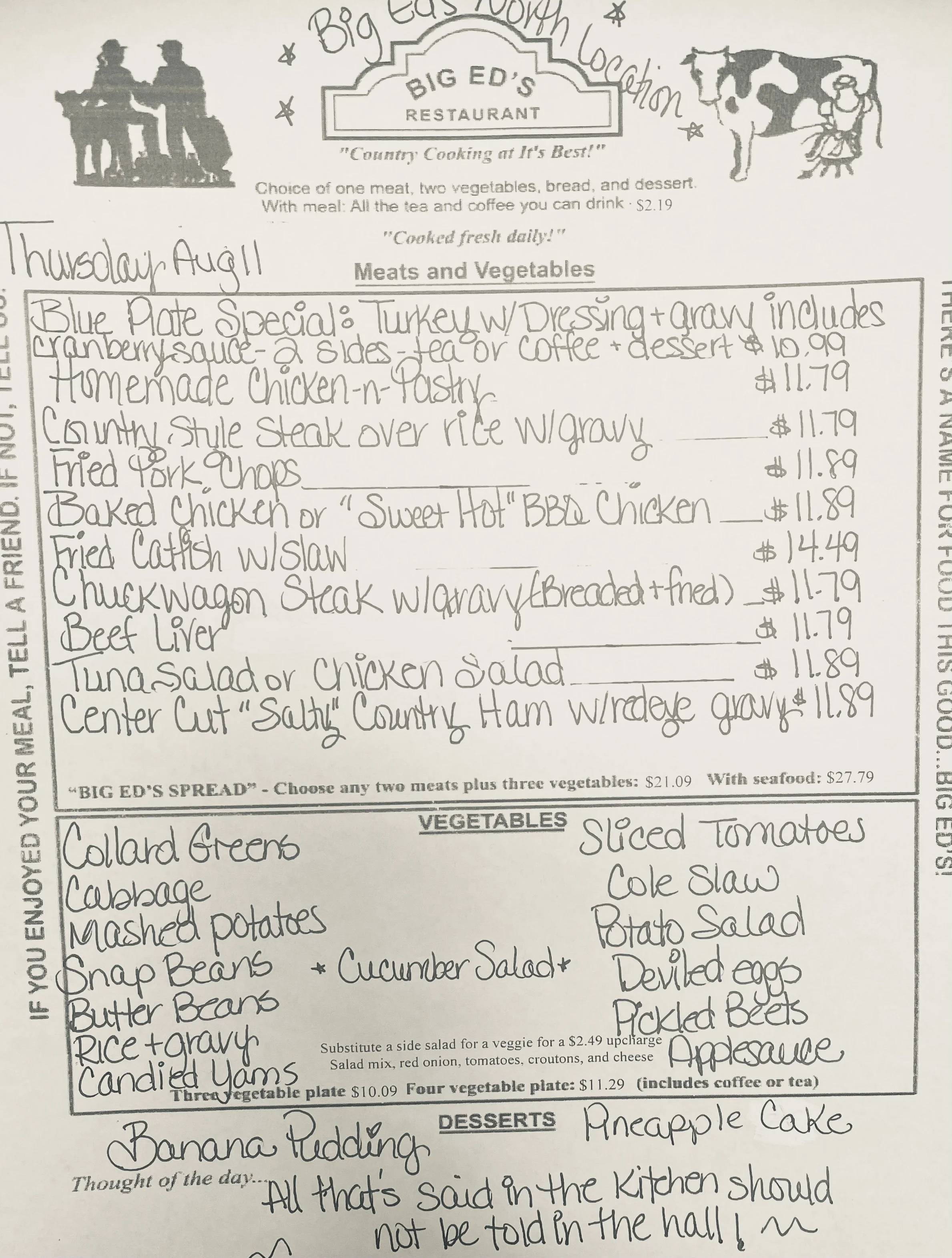 August 11, 2022 Big Ed's August 11, 2022 Big Ed's “ All that’s said in the kitchen should not be told in the hall.” Big Ed's