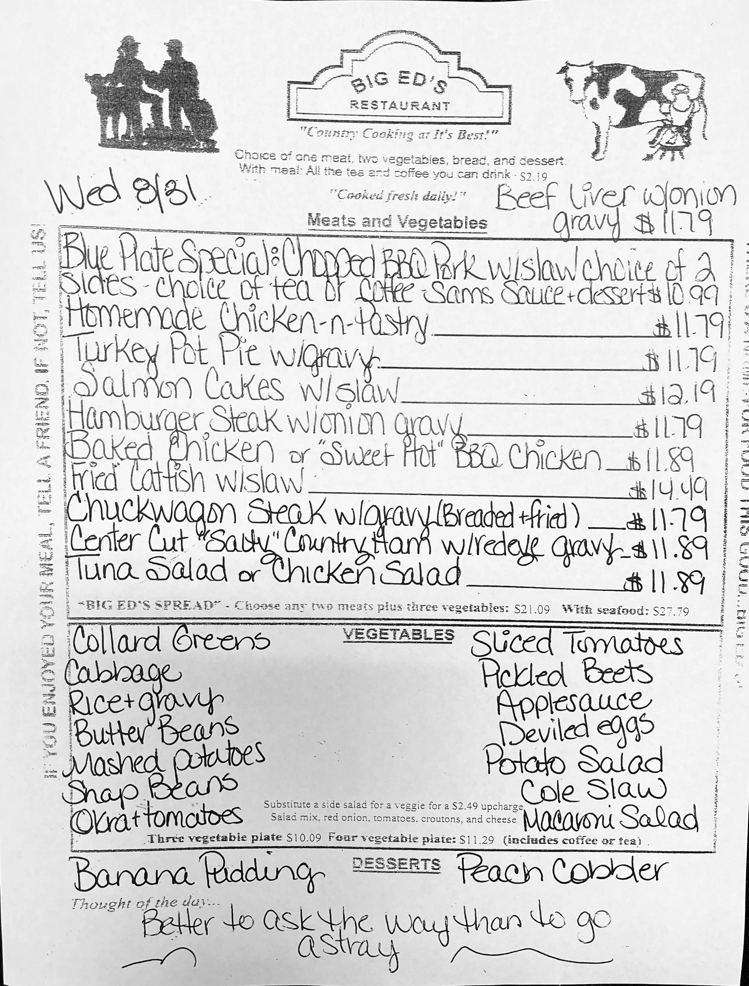 August 31, 2022 Big Ed's August 31, 2022 Big Ed's “ Better to ask the way than to go astray.” Big Ed's