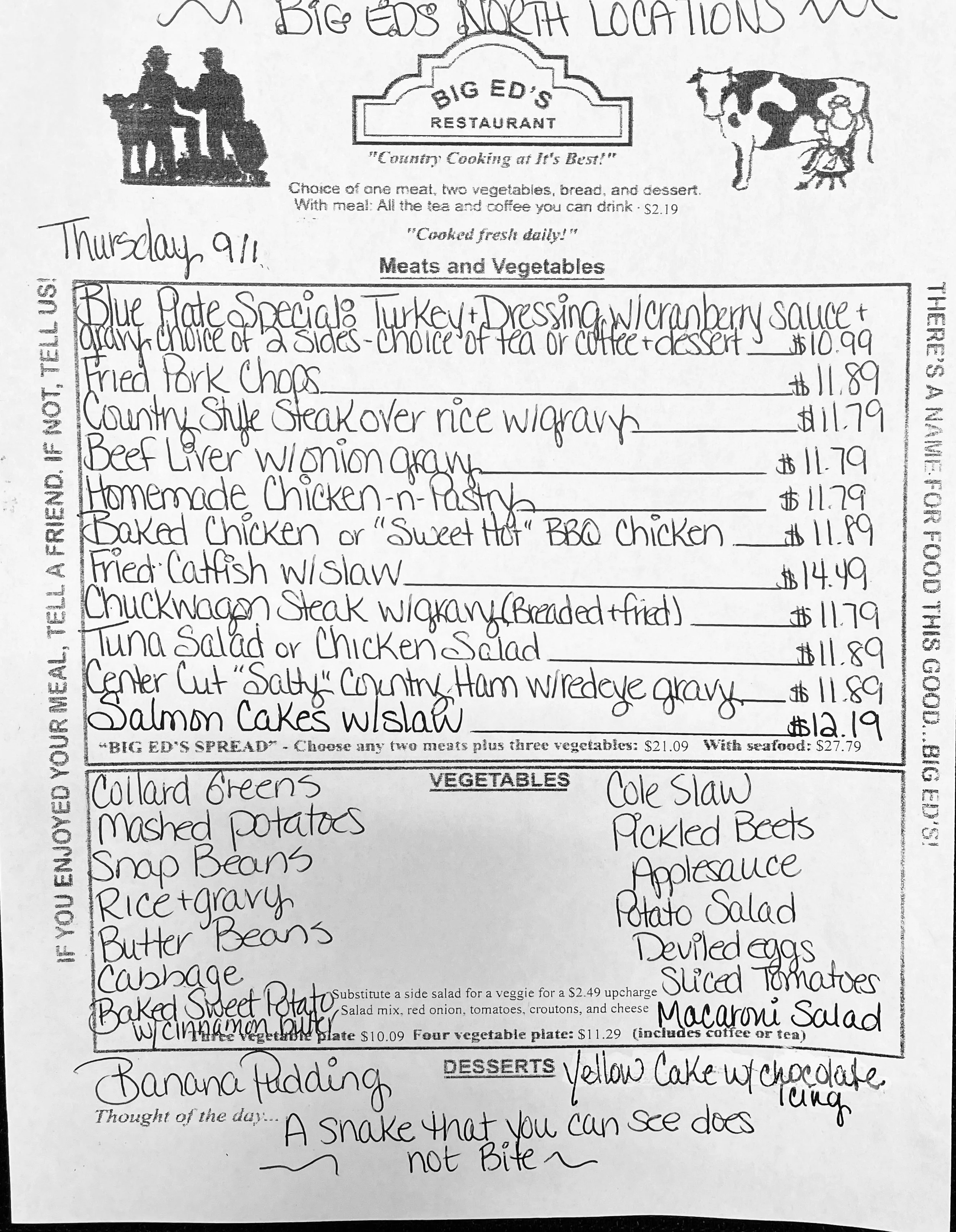 September 1, 2022 Big Ed's September 1, 2022 Big Ed's “ A snake that you can see does not bite.” Big Ed's