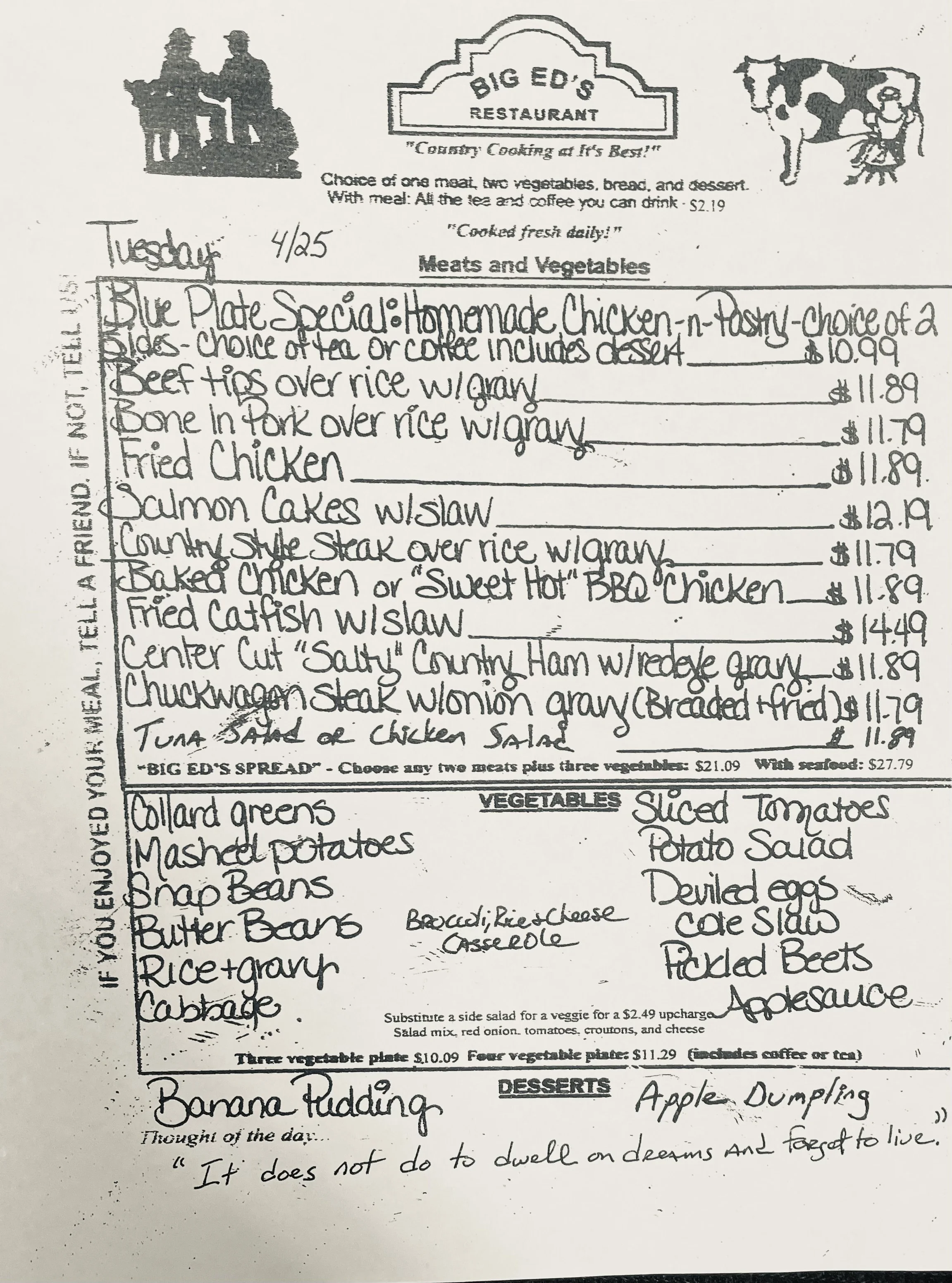 April 25, 2023 Big Ed's April 25, 2023 Big Ed's “ It does not do to dwell on dreams and forget to live.” Big Ed's