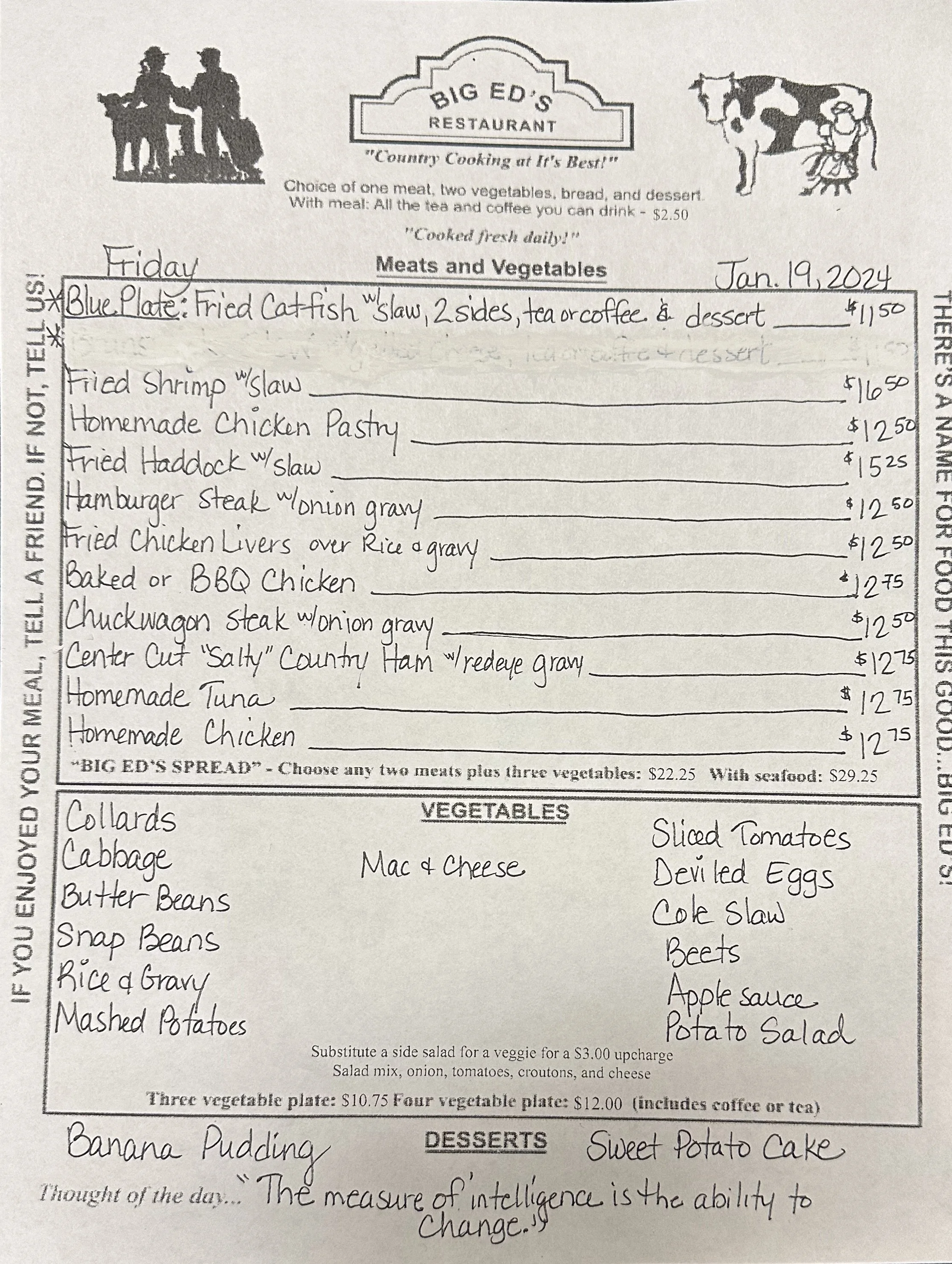 January 19, 2024 Big Ed's January 19, 2024 Big Ed's “ The measure of intelligence is the ability to change.” Big Ed's