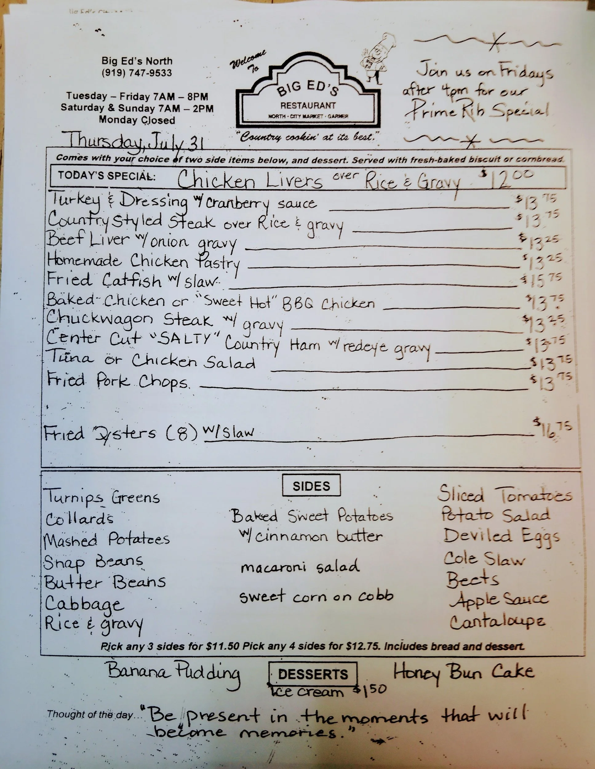 July 31, 2025 Big Ed's July 31, 2025 Big Ed's “Be present in the moments that will become memories!” Big Ed's