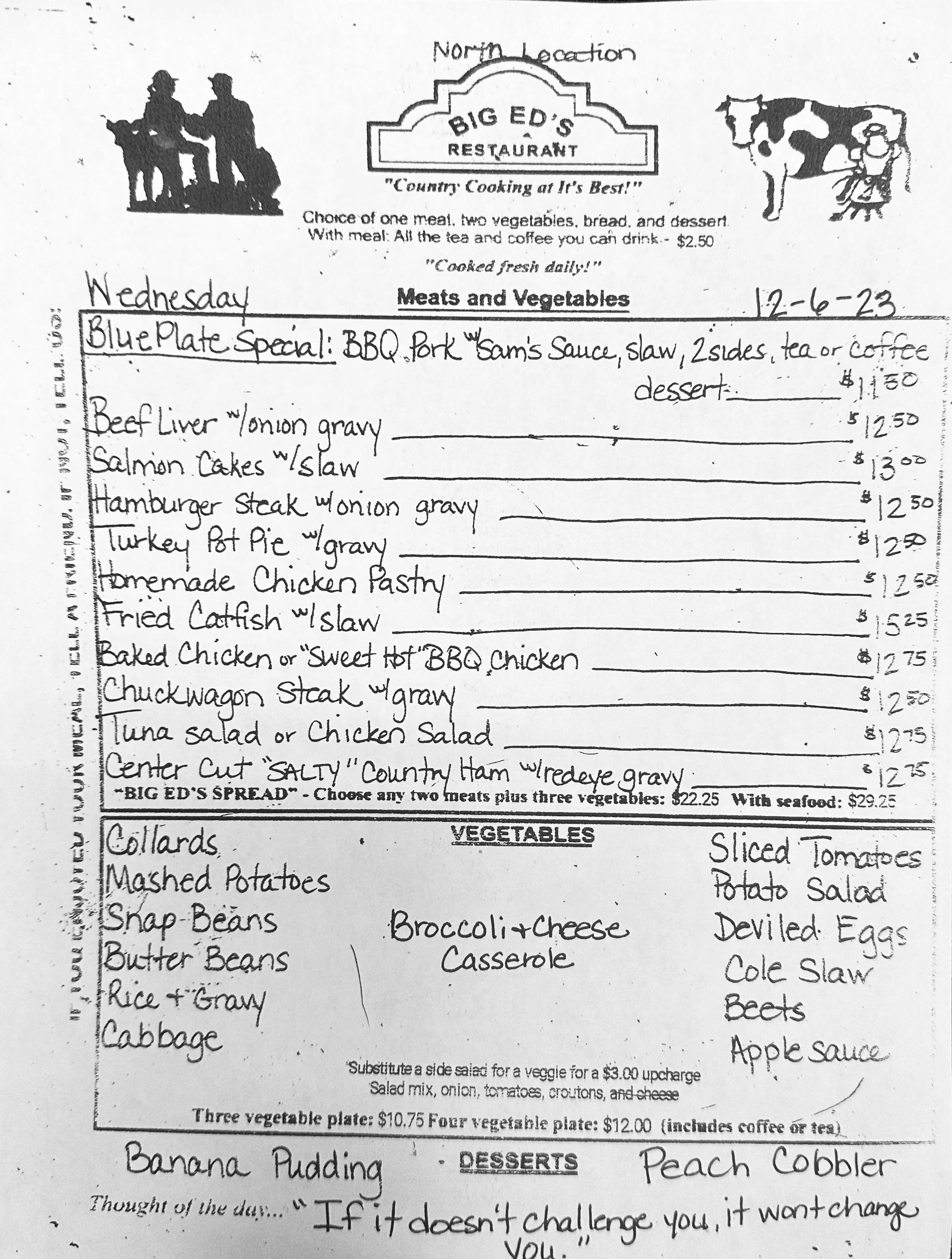 December 6, 2023 Big Ed's December 6, 2023 Big Ed's “ If it doesn’t challenge you it won’t change you.”