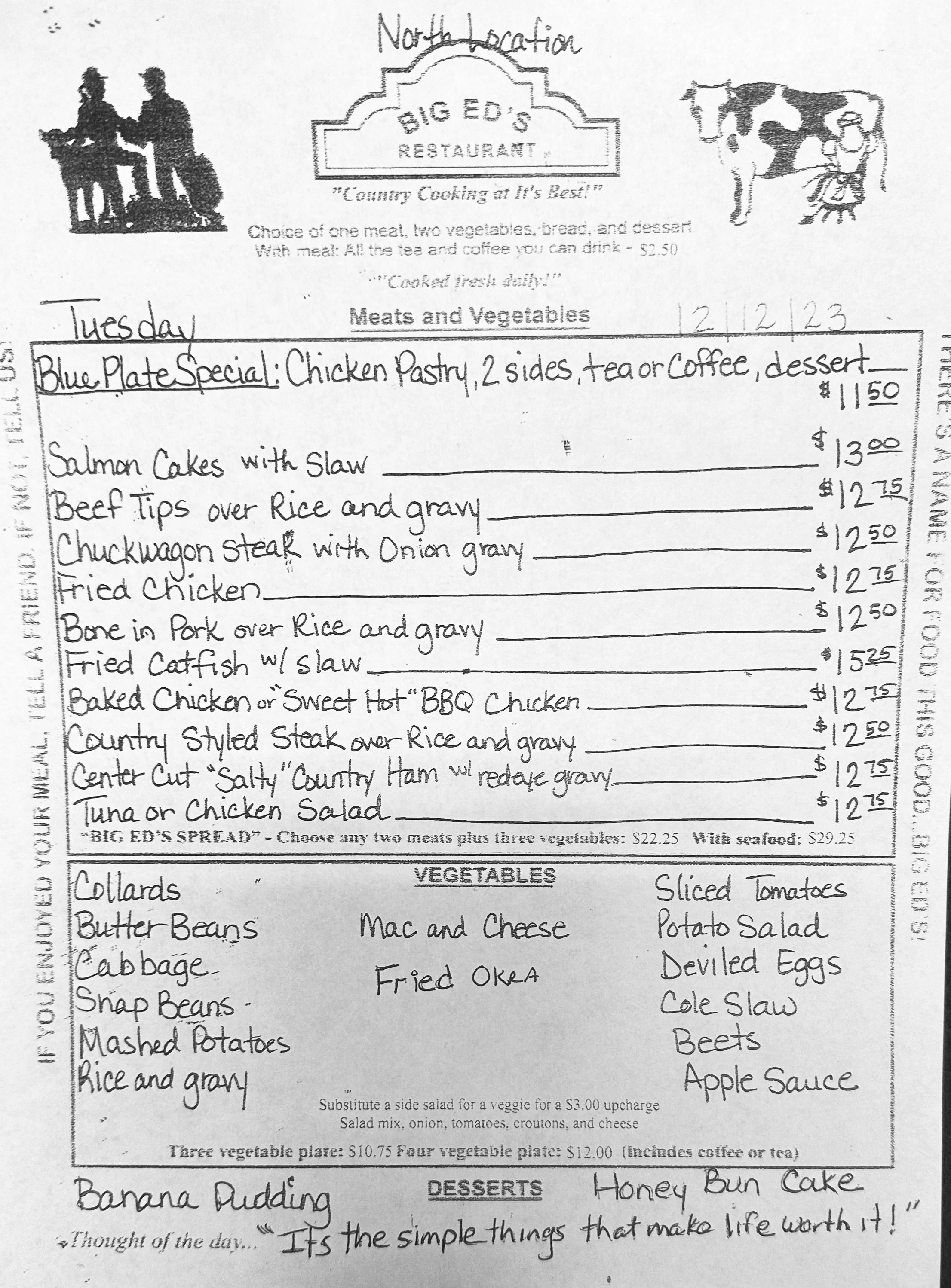 December 12, 2023 Big Ed's December 12, 2023 Big Ed's “ It’s the simple things that make life worth it.”