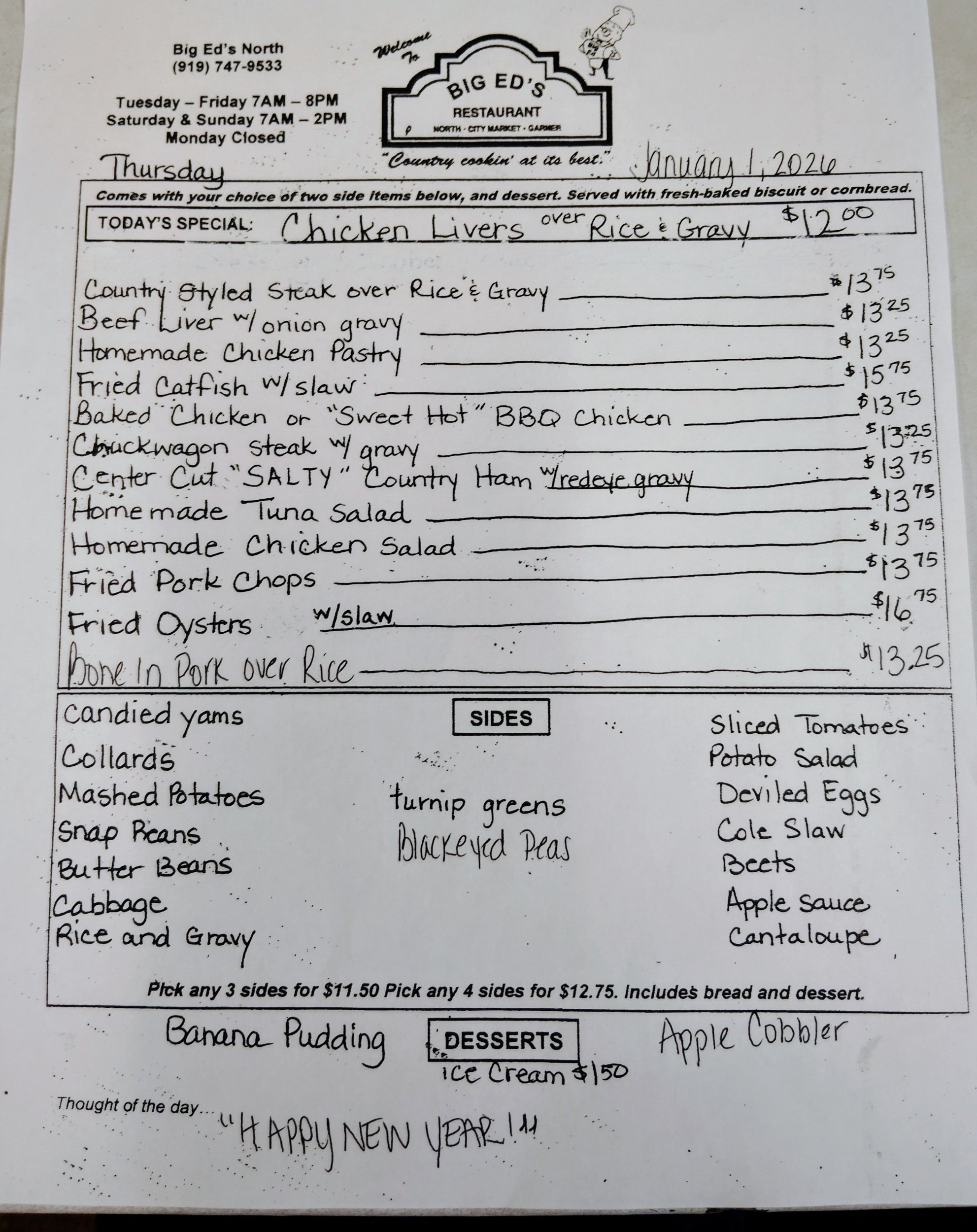 January 1, 2026 Big Ed's January 1, 2026 Big Ed's Happy New Year from our Big Ed's North Family to yours!”