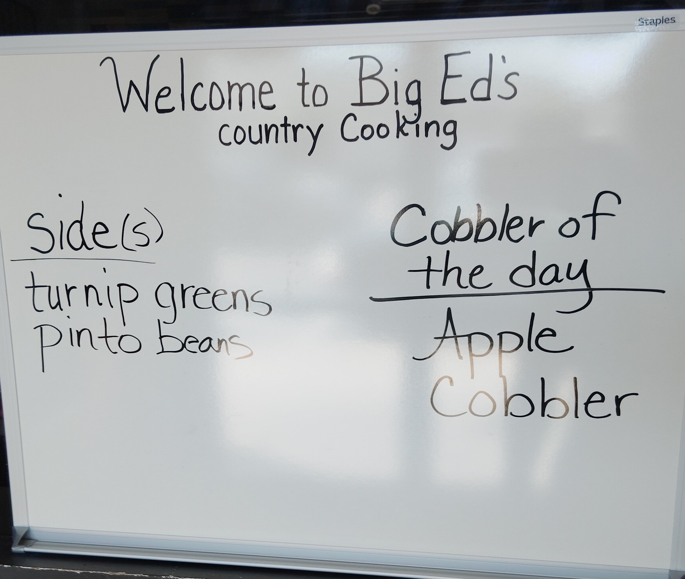January 27, 2026 Big Ed's January 27, 2026 Big Ed's “Patience is a virtue!”Lunch will be ready today at 11:30 due to our delayed opening. We will not have pot roast today. We apologize for any inconvenience and we appreciate your patience.